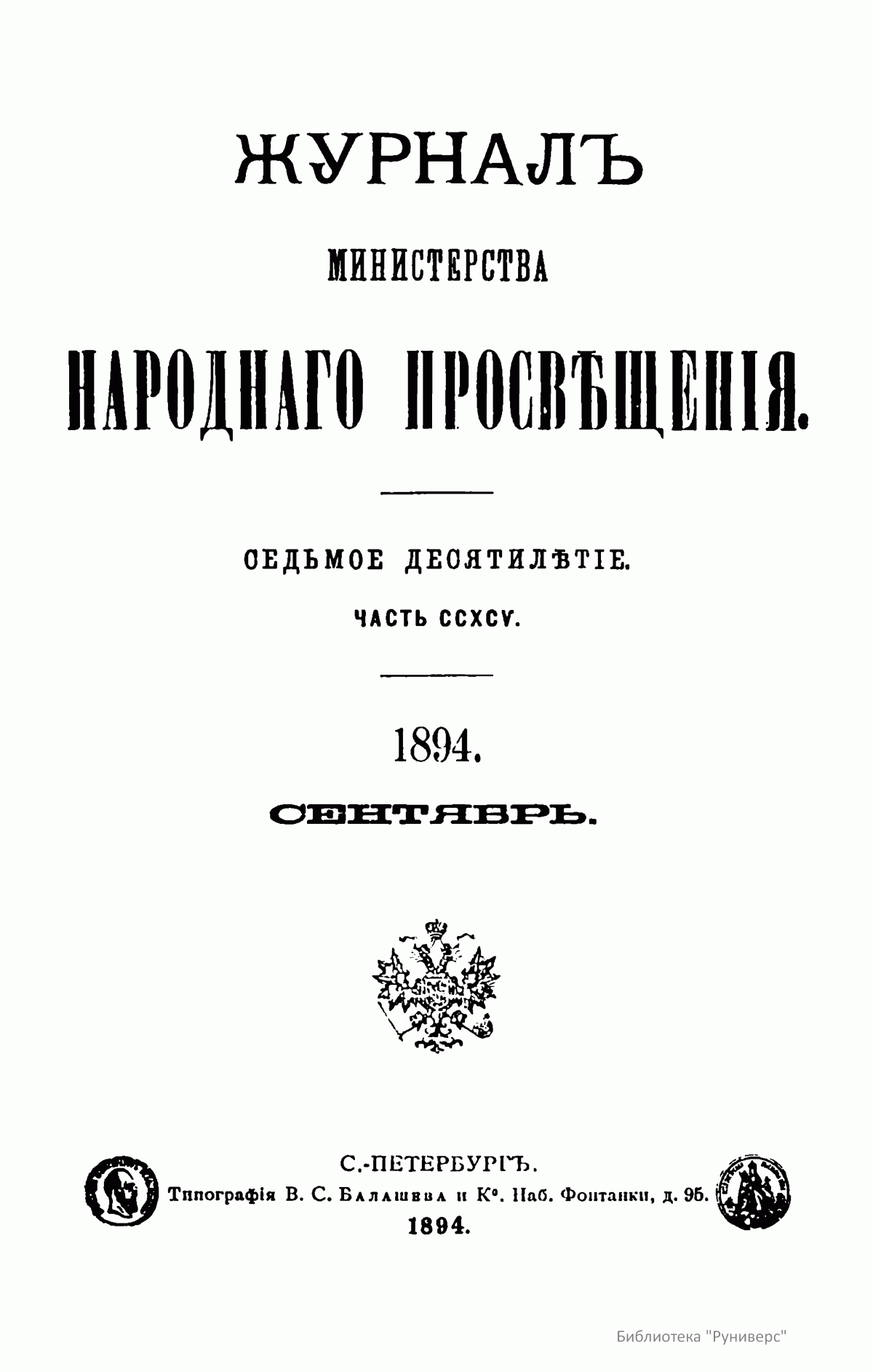Журналъ Министерства народнаго просвѣщения. Часть CCXCV