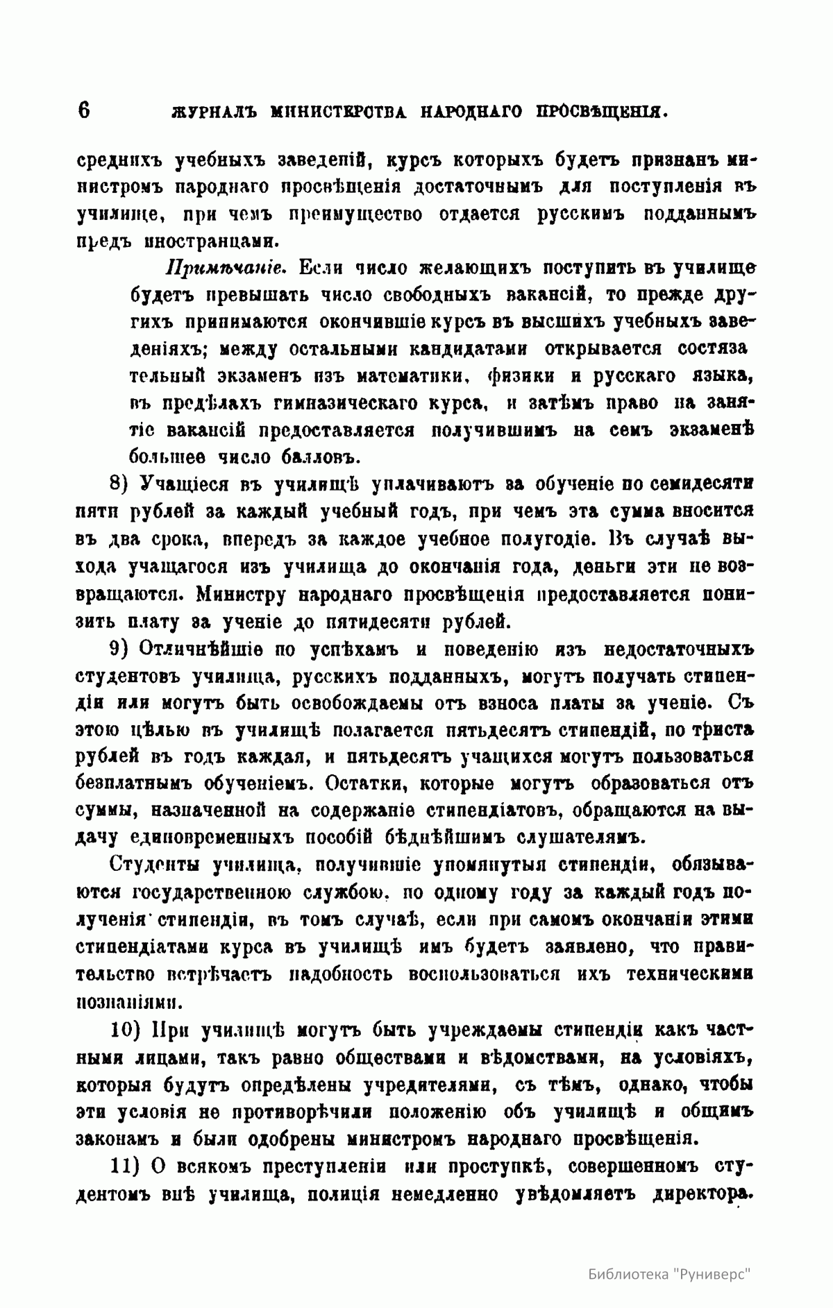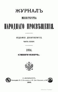 Журнал Министерства народного просвещения выходил с 1834-го по 1917 год. Официальный периодический журнал об успехах просвещения в России. Издатели журнала уверены в том, что «если для каждого человека необходим выход из грубой тьмы невежества и беспрерывное дальнейшее движение к свету, то для народов необходимо попечительное участие правительства в образовании. Только правительство имеет все средства знать и высоту успехов всемирного образования, и настоящие нужды Отечества».