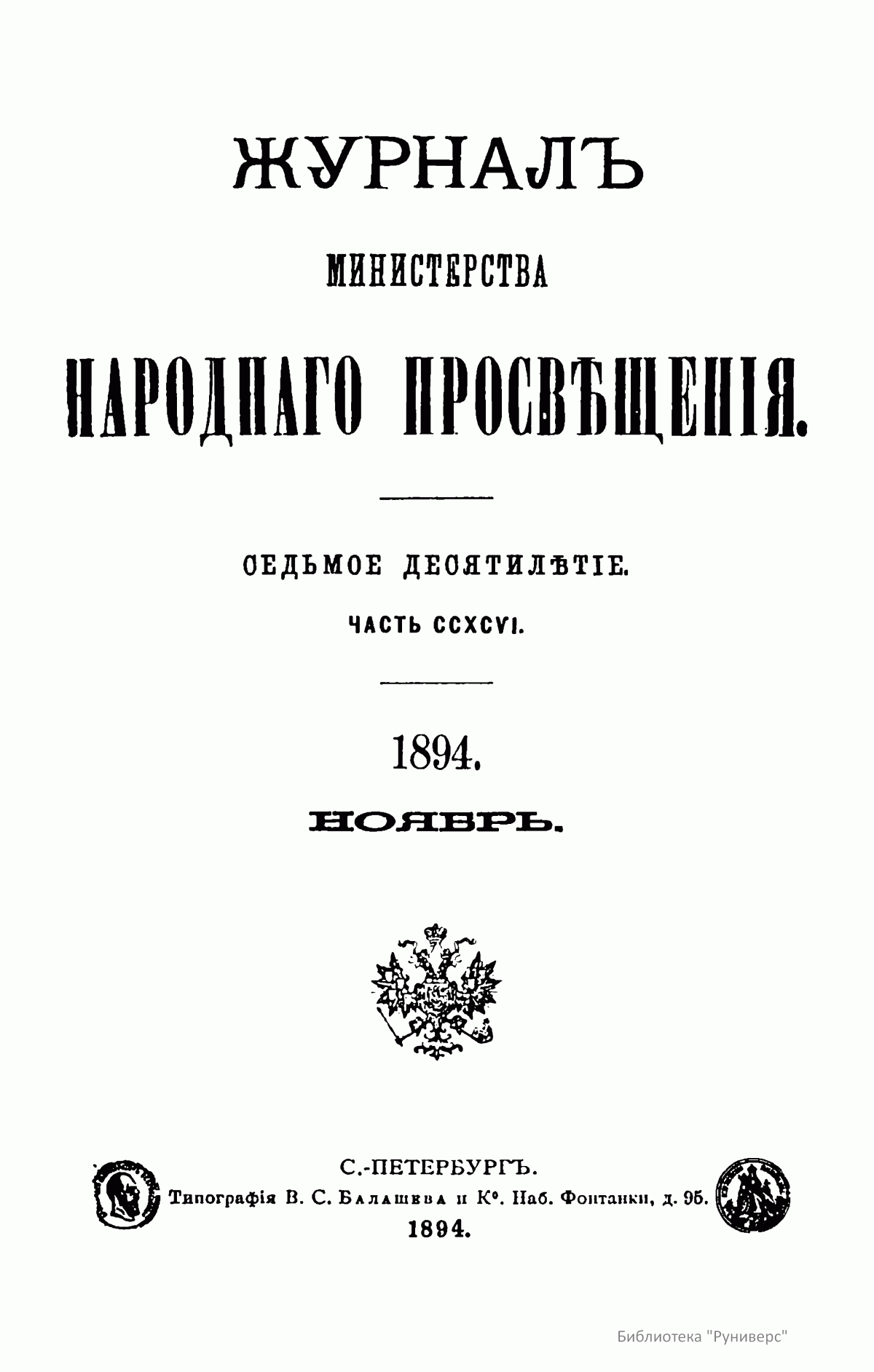 Журнал Министерства народного просвещения. Часть CCXCVI