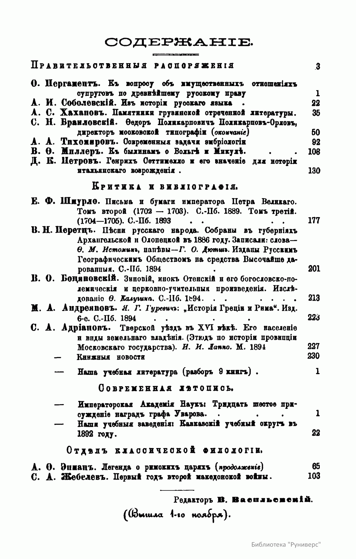 (помощник редактора, с 1899 года - редактор).