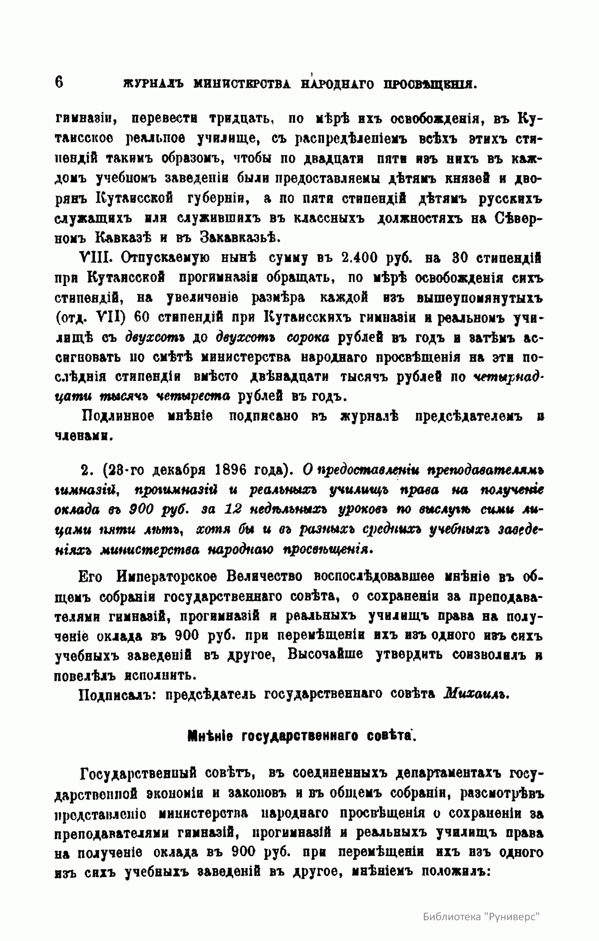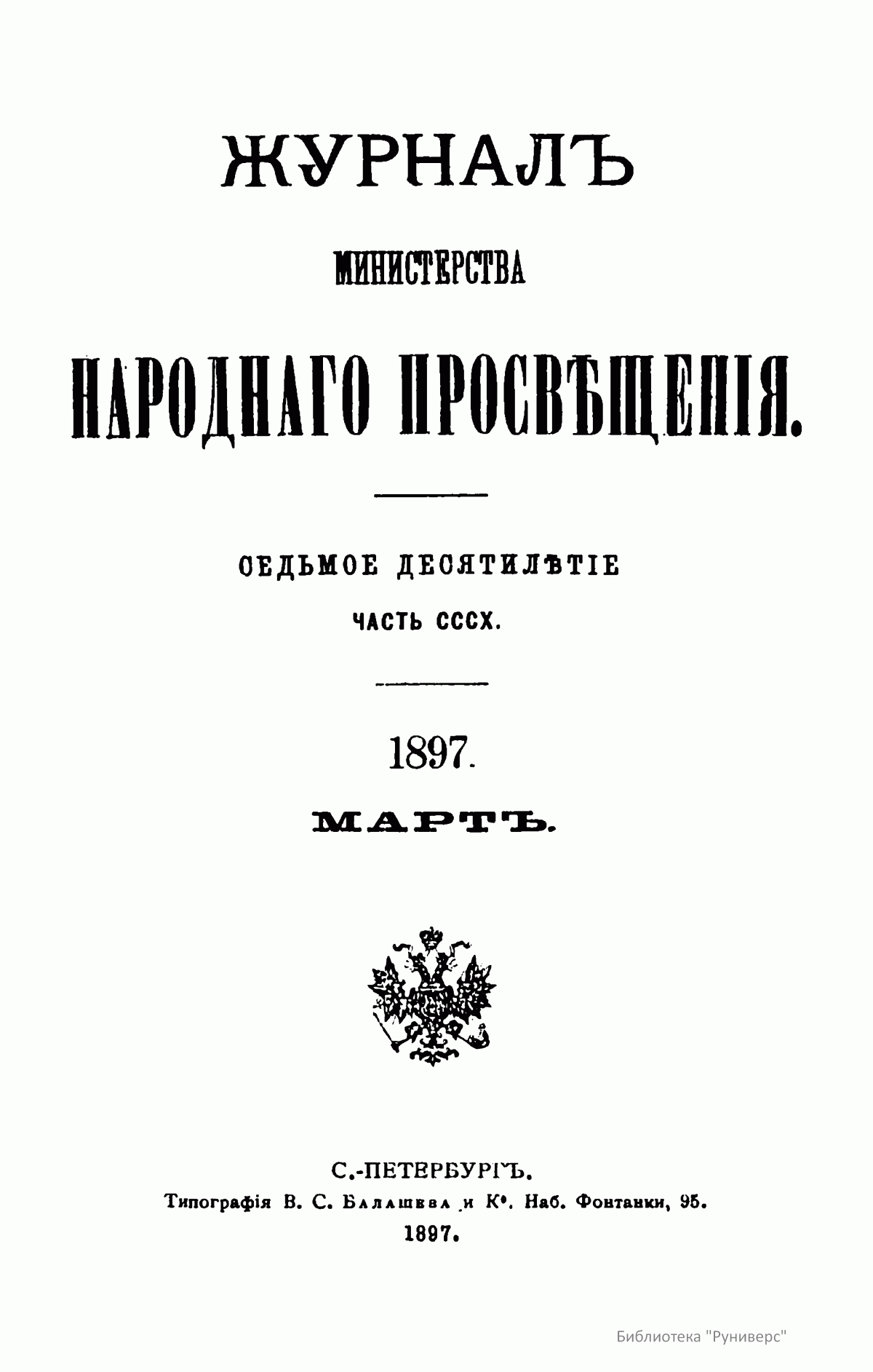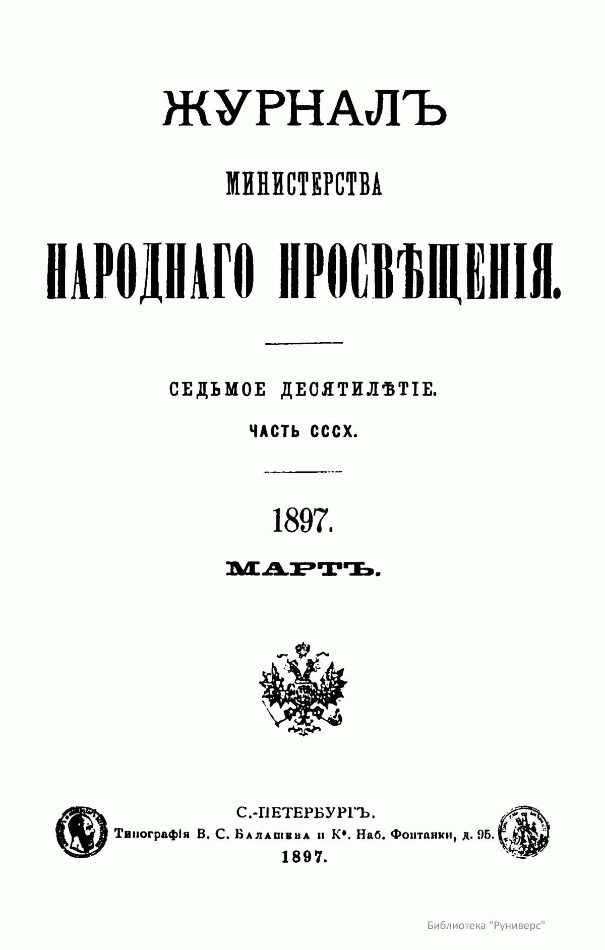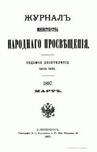 Журнал Министерства народного просвещения выходил с 1834-го по 1917 год. Официальный периодический журнал об успехах просвещения в России. Издатели журнала уверены в том, что «если для каждого человека необходим выход из грубой тьмы невежества и беспрерывное дальнейшее движение к свету, то для народов необходимо попечительное участие правительства в образовании. Только правительство имеет все средства знать и высоту успехов всемирного образования, и настоящие нужды Отечества».