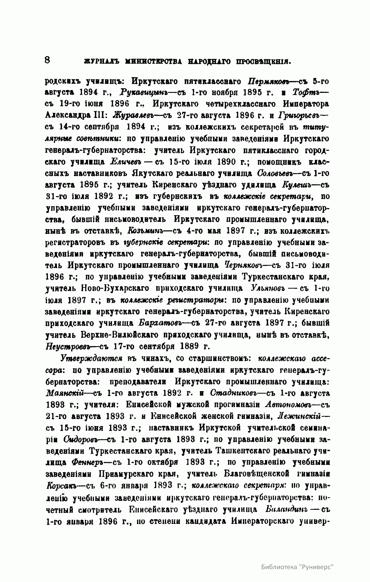 Журнал Министерства народного просвещения выходил с 1834-го по 1917 год. Официальный периодический журнал об успехах просвещения в России. Издатели журнала уверены в том, что «если для каждого человека необходим выход из грубой тьмы невежества и беспрерывное дальнейшее движение к свету, то для народов необходимо попечительное участие правительства в образовании. Только правительство имеет все средства знать и высоту успехов всемирного образования, и настоящие нужды Отечества».