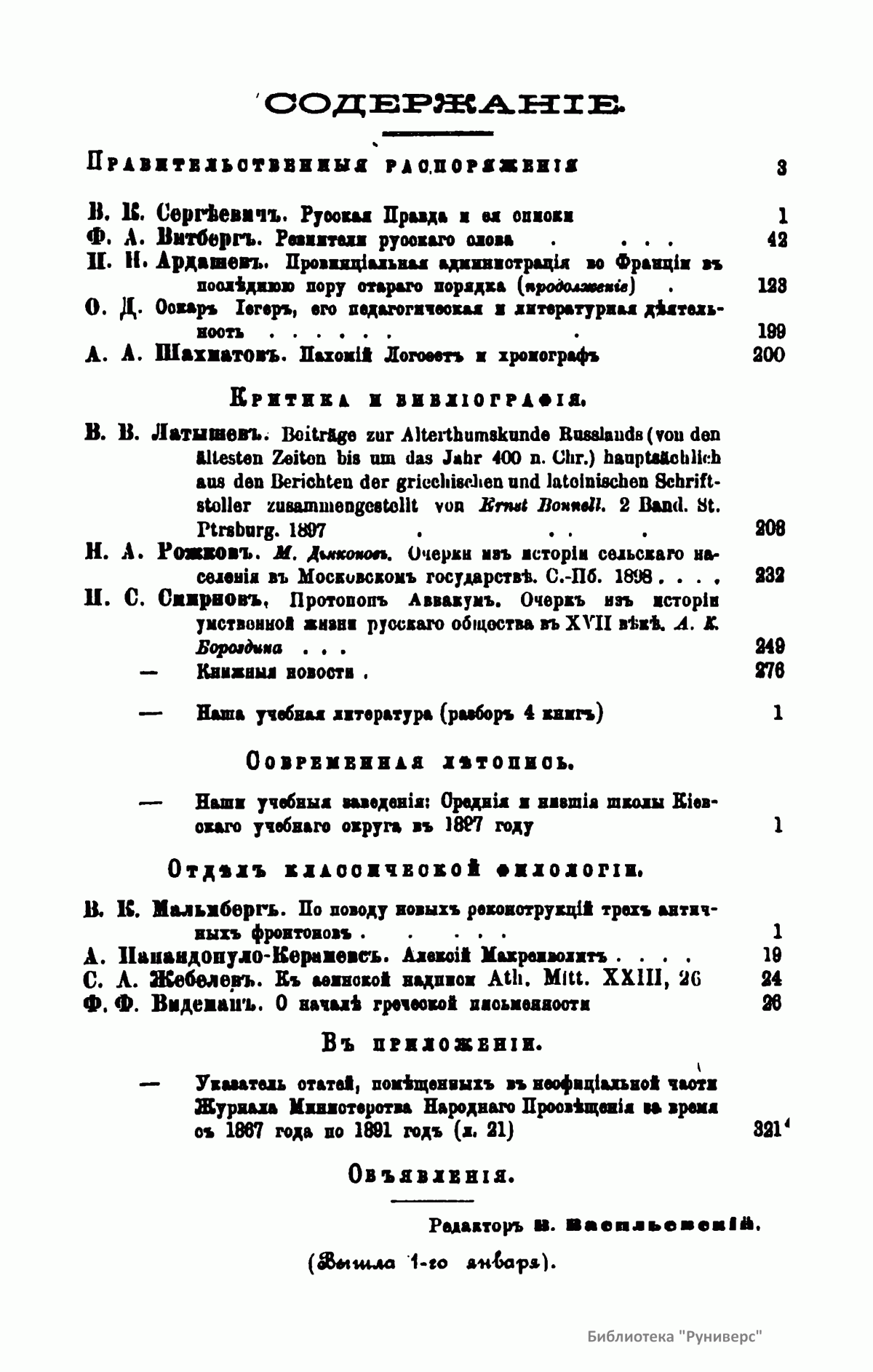 Журнал широкого профиля (гуманитарные науки), но в нем печатались философские статьи, имеется много официального материала, ценного для понимания истории философии в России.