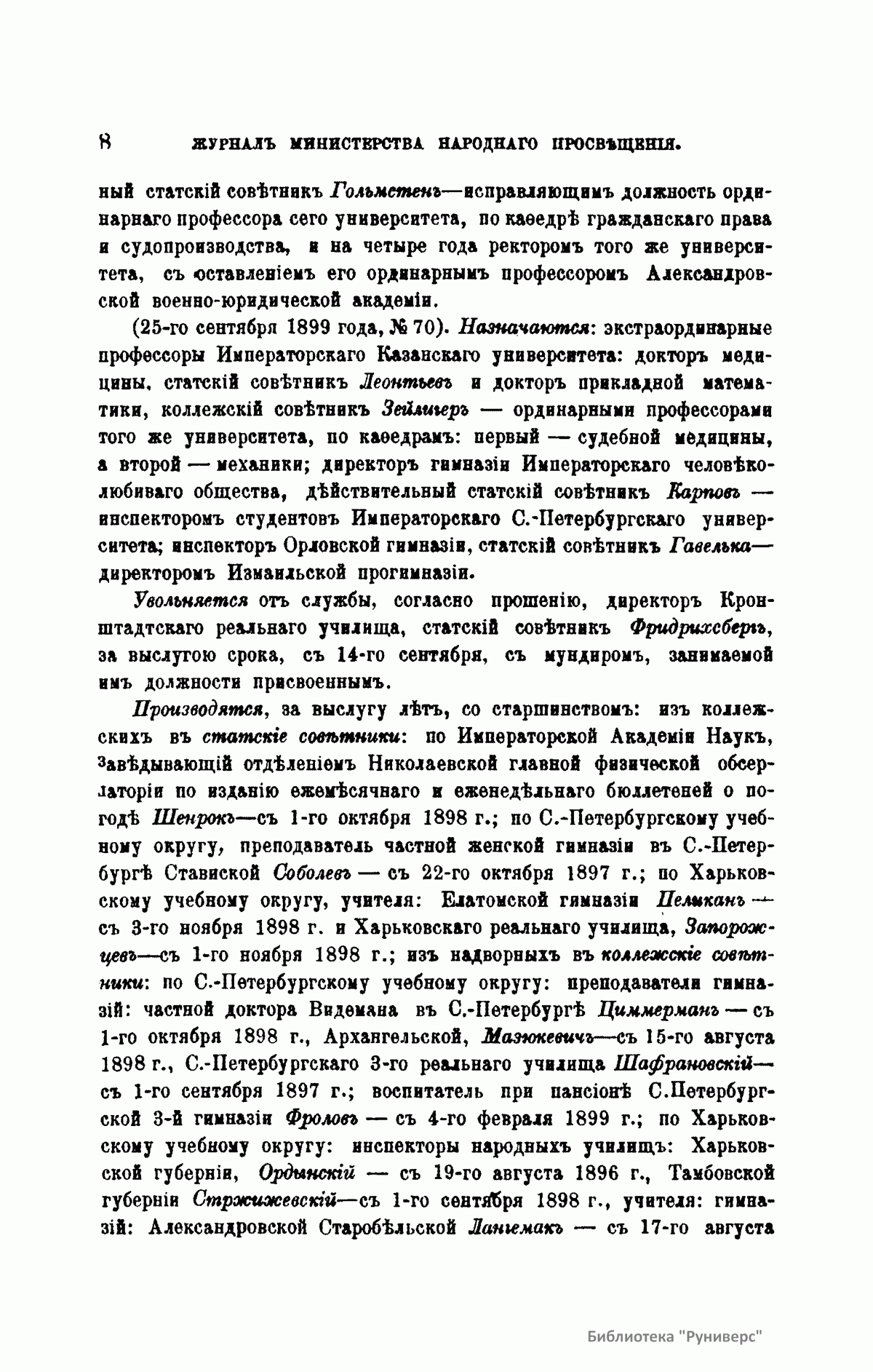 Журнал Министерства народного просвещения выходил с 1834-го по 1917 год. Официальный периодический журнал об успехах просвещения в России. Издатели журнала уверены в том, что «если для каждого человека необходим выход из грубой тьмы невежества и беспрерывное дальнейшее движение к свету, то для народов необходимо попечительное участие правительства в образовании. Только правительство имеет все средства знать и высоту успехов всемирного образования, и настоящие нужды Отечества».