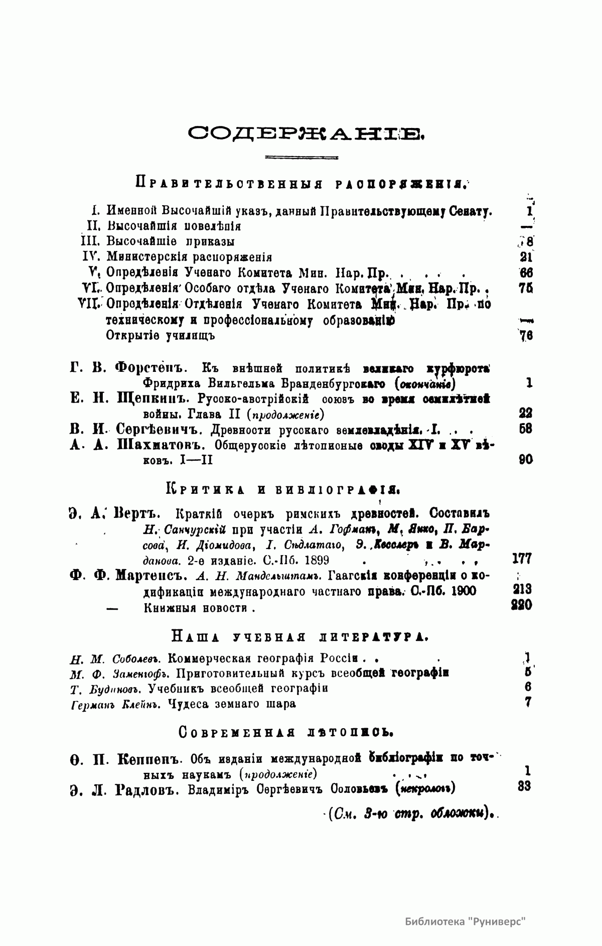 С 1864 года стали выходить указатели к повременным изданиям Министерства народного просвещения начиная с 1803 года.