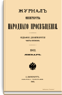 Журнал Министерства народного просвещения выходил с 1834-го по 1917 год. Официальный периодический журнал об успехах просвещения в России. Издатели журнала уверены в том, что «если для каждого человека необходим выход из грубой тьмы невежества и беспрерывное дальнейшее движение к свету, то для народов необходимо попечительное участие правительства в образовании. Только правительство имеет все средства знать и высоту успехов всемирного образования, и настоящие нужды Отечества».