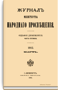 Журнал Министерства народного просвещения выходил с 1834-го по 1917 год. Официальный периодический журнал об успехах просвещения в России. Издатели журнала уверены в том, что «если для каждого человека необходим выход из грубой тьмы невежества и беспрерывное дальнейшее движение к свету, то для народов необходимо попечительное участие правительства в образовании. Только правительство имеет все средства знать и высоту успехов всемирного образования, и настоящие нужды Отечества».