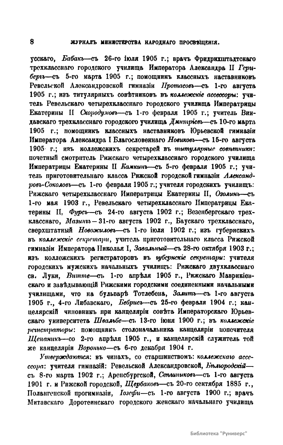 Журнал Министерства народного просвещения выходил с 1834-го по 1917 год. Официальный периодический журнал об успехах просвещения в России. Издатели журнала уверены в том, что «если для каждого человека необходим выход из грубой тьмы невежества и беспрерывное дальнейшее движение к свету, то для народов необходимо попечительное участие правительства в образовании. Только правительство имеет все средства знать и высоту успехов всемирного образования, и настоящие нужды Отечества».