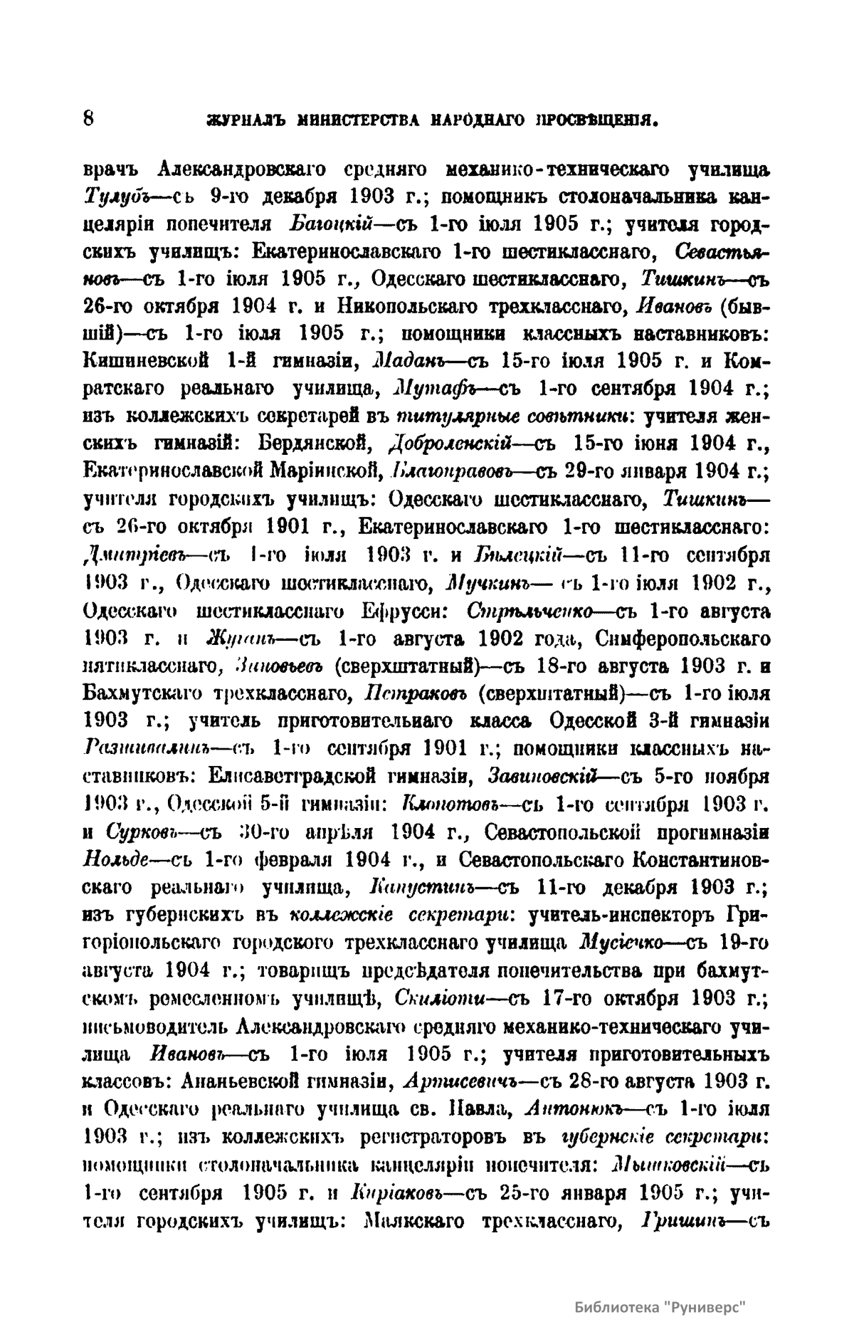Журнал Министерства народного просвещения выходил с 1834-го по 1917 год. Официальный периодический журнал об успехах просвещения в России. Издатели журнала уверены в том, что «если для каждого человека необходим выход из грубой тьмы невежества и беспрерывное дальнейшее движение к свету, то для народов необходимо попечительное участие правительства в образовании. Только правительство имеет все средства знать и высоту успехов всемирного образования, и настоящие нужды Отечества».
