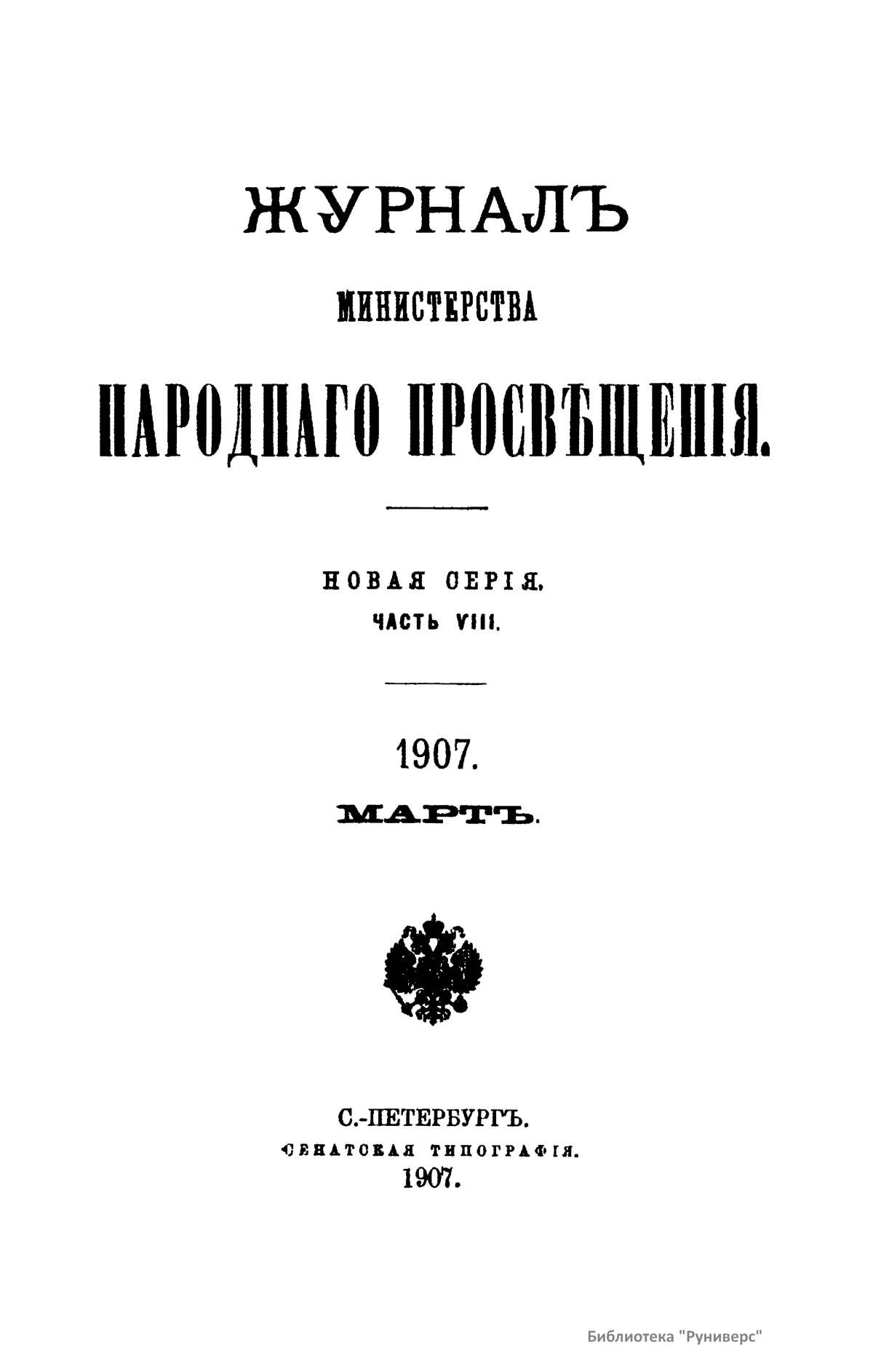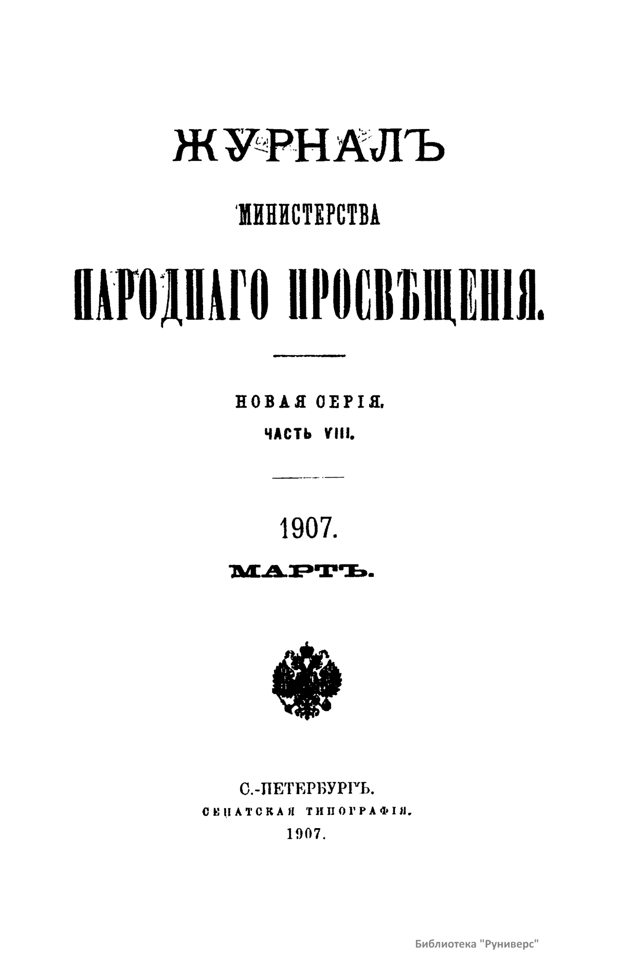 Журналъ Министерства народнаго просвѣщения. Новая серия. Часть VIII
