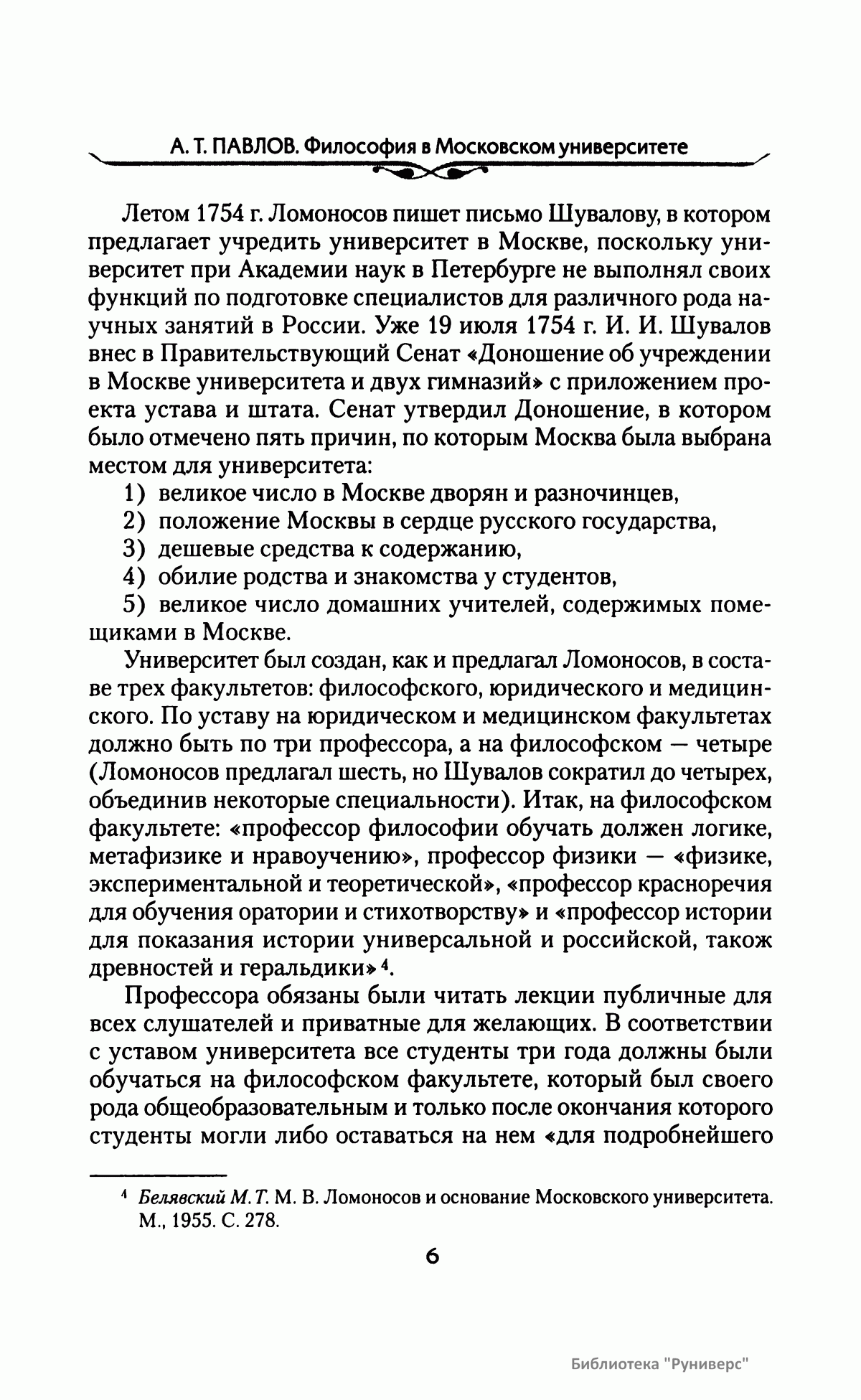 В книге известного ученого Алексея Терентьевича Павлова исследуется история русской профессиональной философии как она сложилась в стенах прославленного Московского университета — одного из центров развития русской мысли. Автор рассказывает о выдающемся вкладе профессорско-преподавательского корпуса в развитие отечественной философской науки, которая в начале XX века достигает высокой научной зрелости, поравнявшись в своих результатах с европейской философией. Книга адресована всем, кто следит за перипетиями русской культуры.