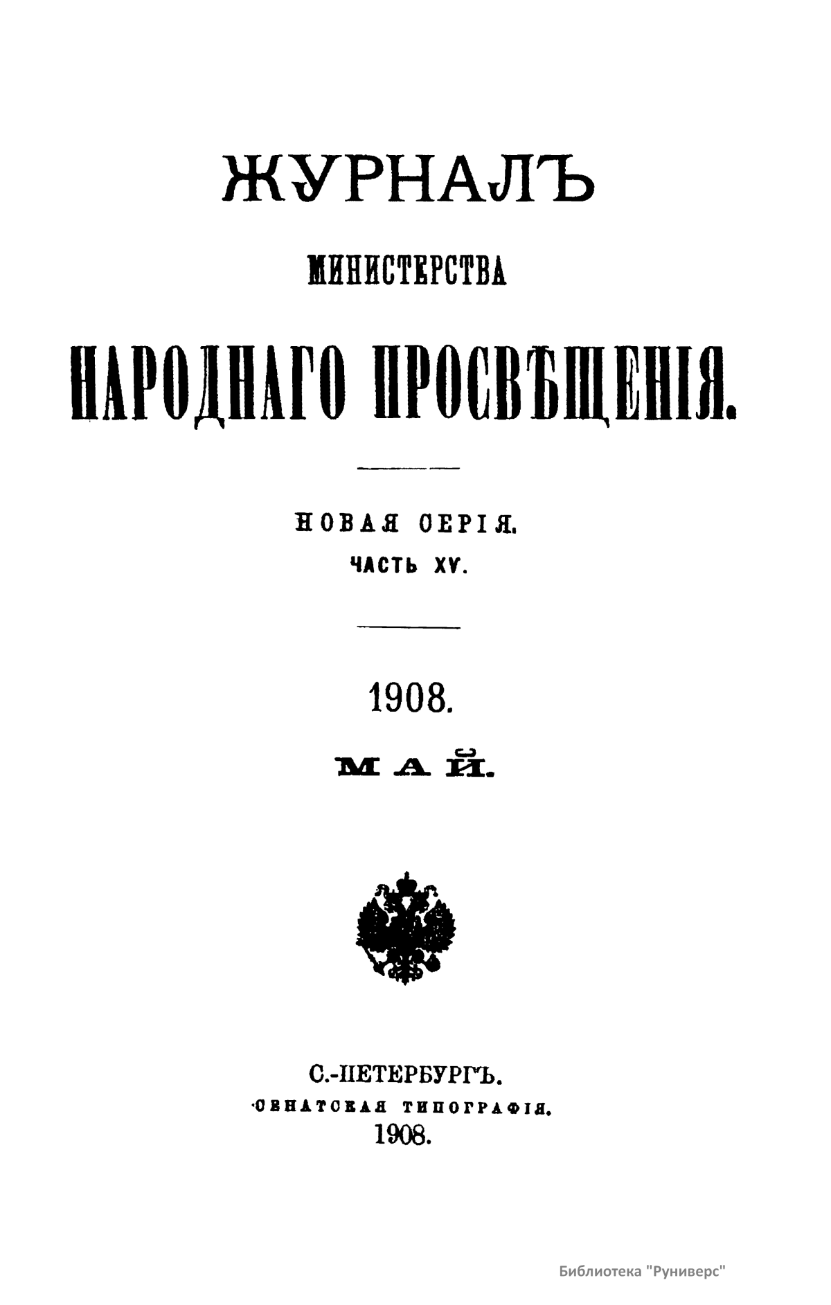 Журналъ Министерства народнаго просвѣщения. Новая серiя. Часть XV
