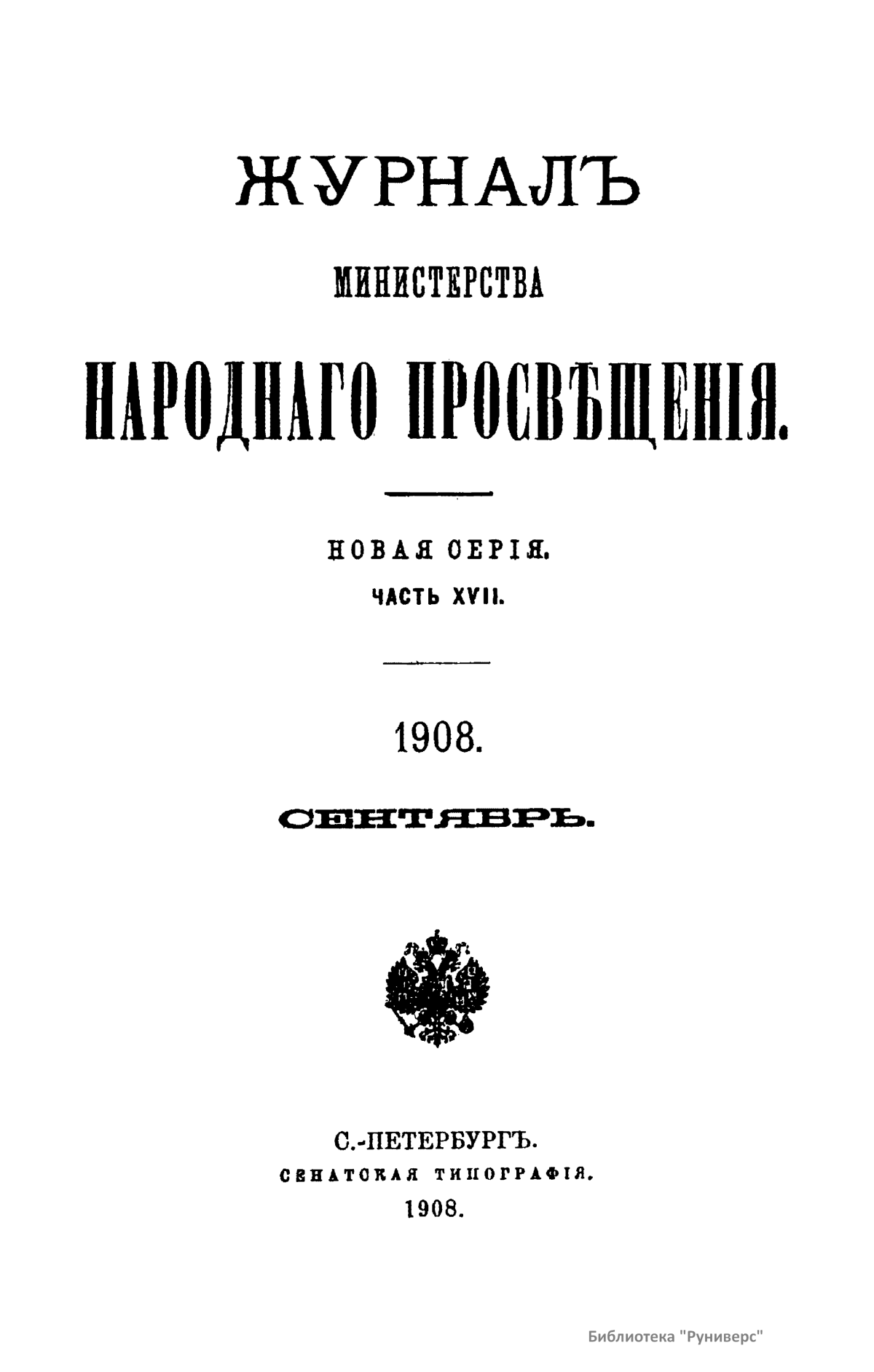 Журнал Министерства народного просвещения. Новая серия. Часть XVII