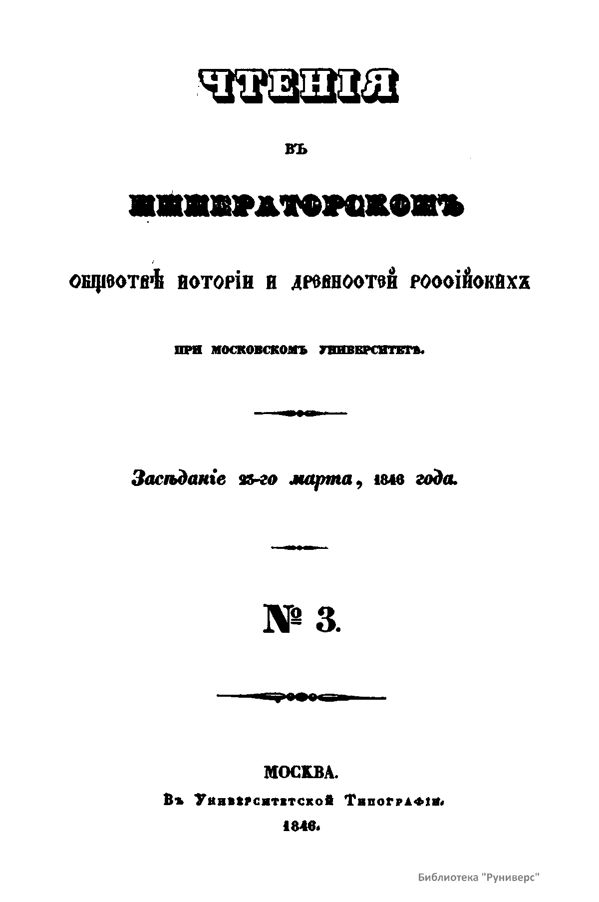 Чтенiя въ Императорскомъ Обществѣ Исторiи и Древностей Россiйскихъ при Московскомъ Университетѣ. Годъ первый. №3