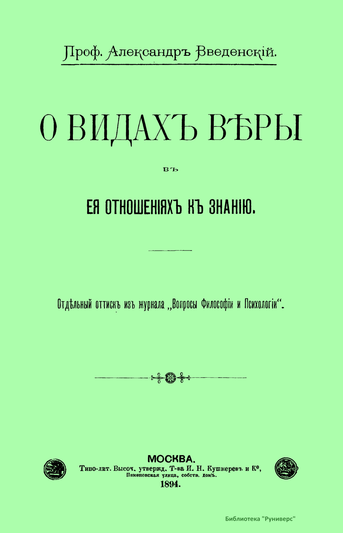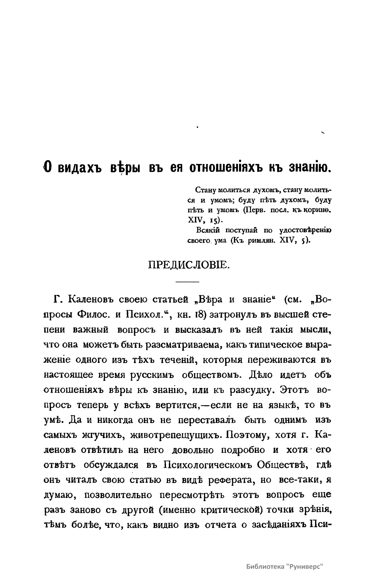 О видахъ вѣры въ ея отношенiяхъ къ знанiю