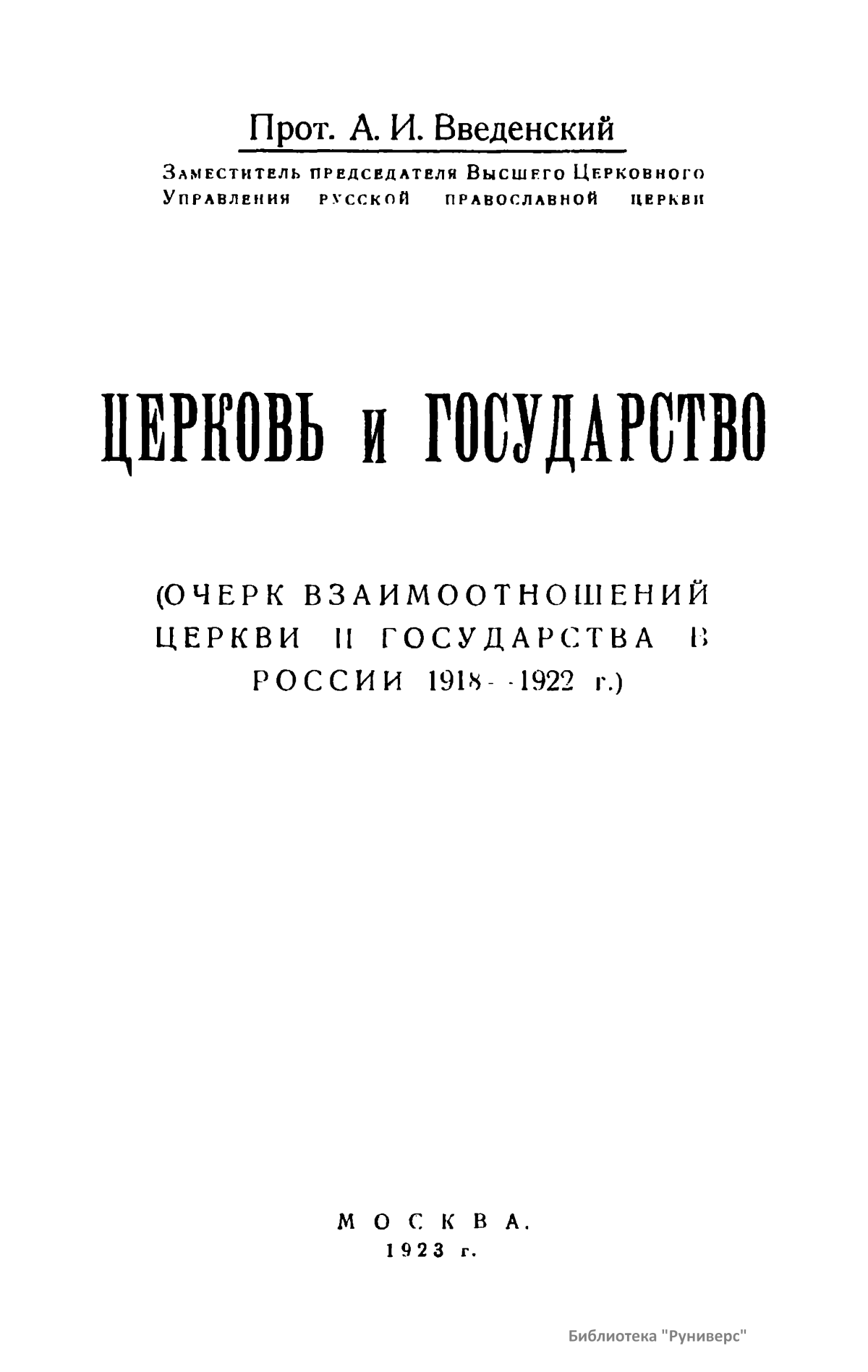 Церковь и государство (Очерк взаимоотношений церкви и государства в России 1918-1922 г.)