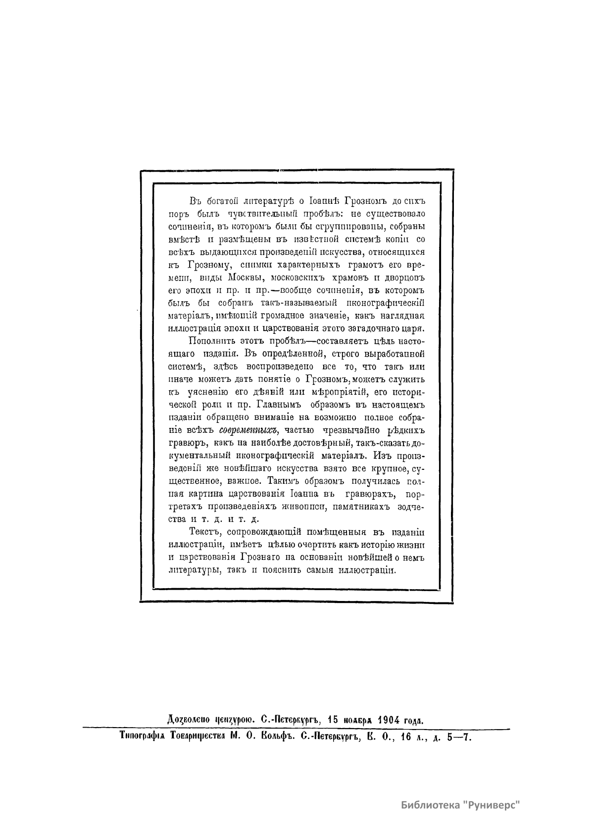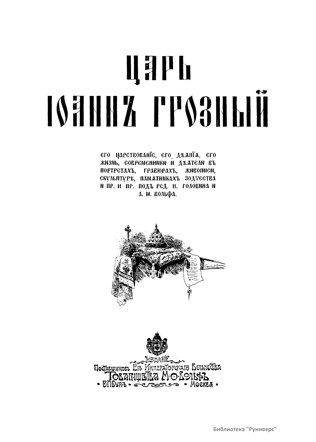 Царь Iоаннъ Грозный. Его царствованiе, его дѣянiя, его жизнь, современники и дѣятели въ портретахъ, гравюрахъ, живописи, скульптурѣ, памятникахъ зодчества и пр. и пр.