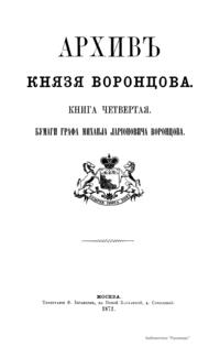 Издание представляет документы из архива графов (с 1845 г. князей) Воронцовых, крупных политических деятелей России XVIII и XIX вв.: Михаила Илларионовича (1714 – 1767) – канцлера при Елизавете Петровне; Романа Илларионовича (1707 – 1783); Александра Романовича (1741 – 1805) – канцлера в 1802 – 1804 гг.; Семена Романовича (1744 – 1832) – посла в Англии в 1785 – 1806 гг.; Михаила Семеновича (1782 – 1856) – фельдмаршала, наместника Кавказа в 1845 – 1853 гг. Архив издан в 40 тт. (1870 – 1895) под редакцией П. И. Бартенева. Содержит огромный материал по внешней политике, по управлению хозяйством Елизаветы Петровны (кн. 1), по делу Миниха и Бирона (кн. 2), о «чумном бунте» 1771 г. в Москве, о движении Е. И. Пугачева (кн. 16), о А. Н. Радищеве (кн. 5, 12, 24). Книга 21-я занята «Записками» Е. Р. Воронцовой (Дашковой). В книге 24-й – свыше 100 писем А. В. Суворова. Среди обширной переписки Воронцовых встречаются письма Вольтера, Д'Аламбера, Жозефа де Местра, Костюшки, Талейрана, Питта и др.