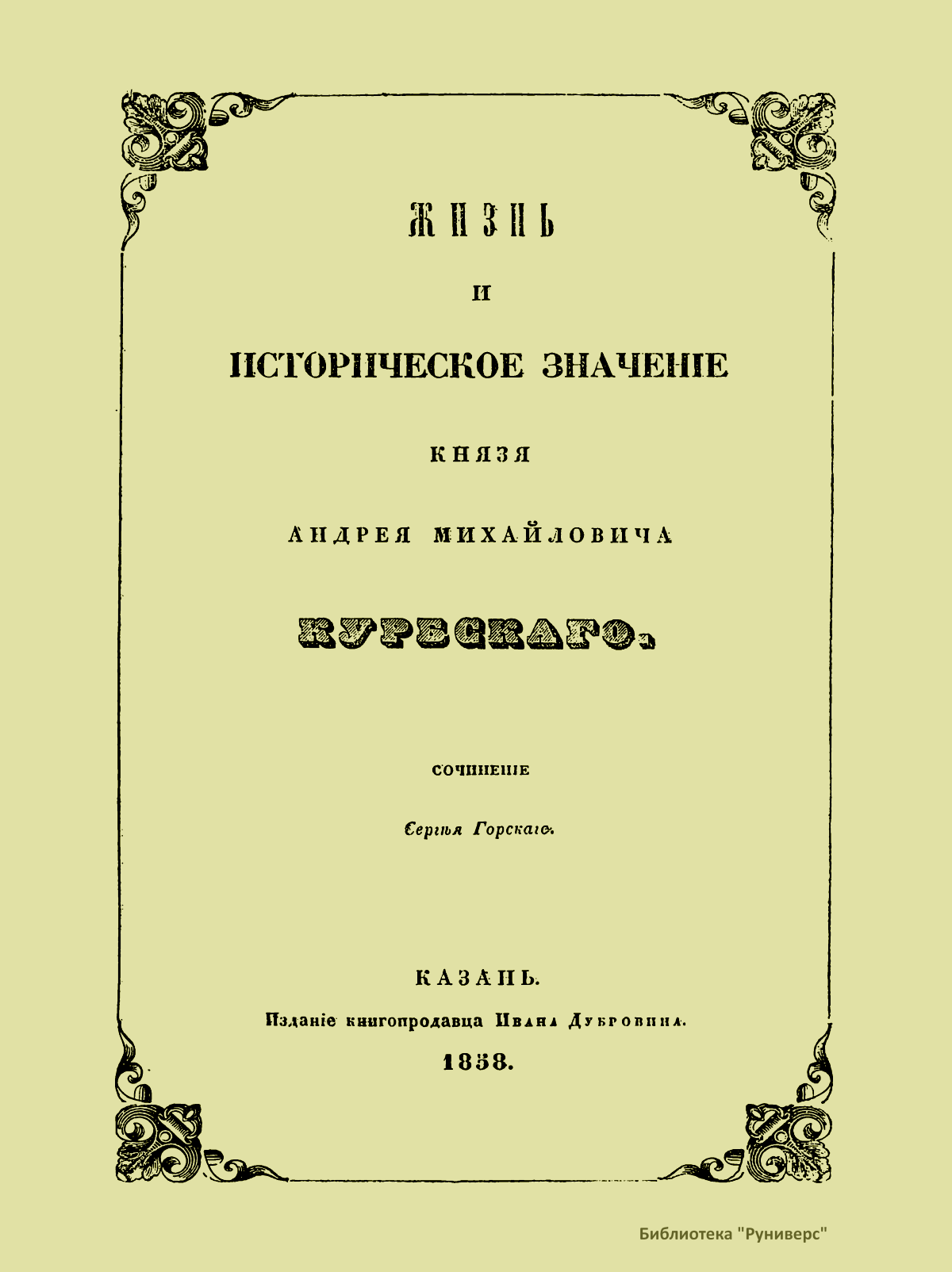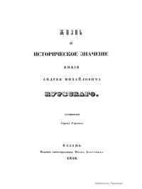 Жизнь и историческое значенiе Князя Андрея Михайловича Курбскаго