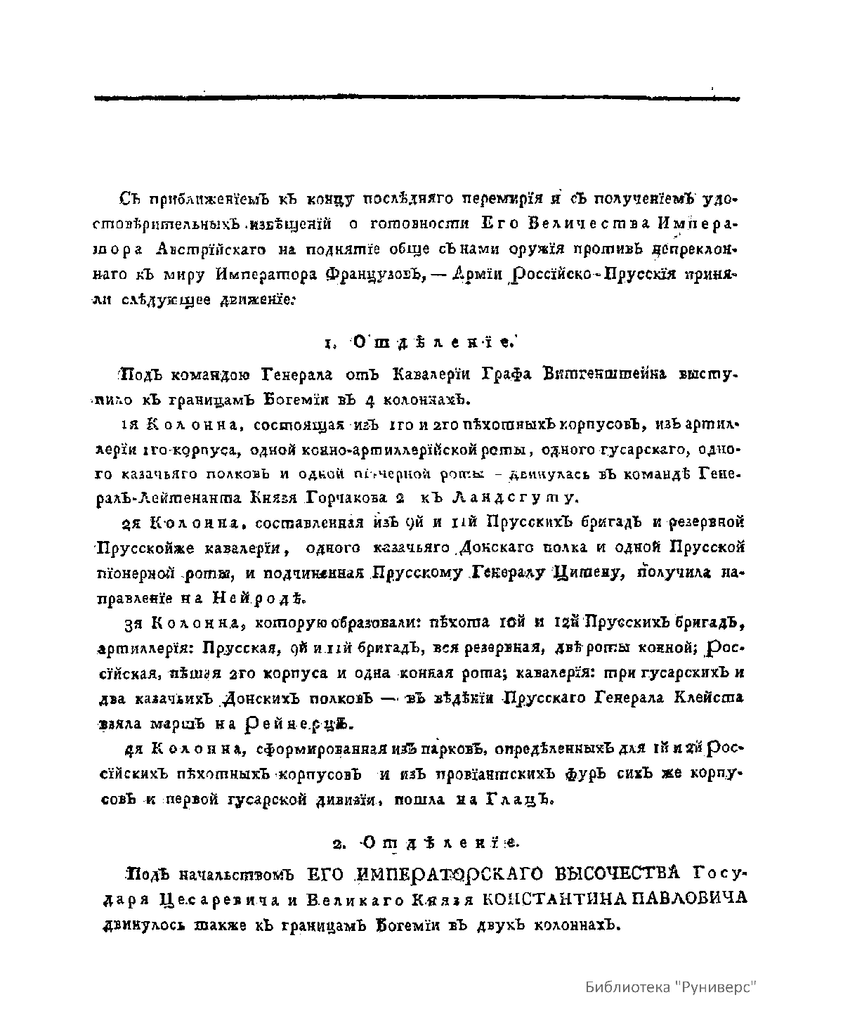 Журналъ Военныхъ движенiй и дѣйствiй Россiйско-императорскихъ и королевско Прусскихъ армiй со времени прекращенiя послѣдняго между ими и Армiями Французскими перемирiя т.е. с 5/17 Августа 1813 года