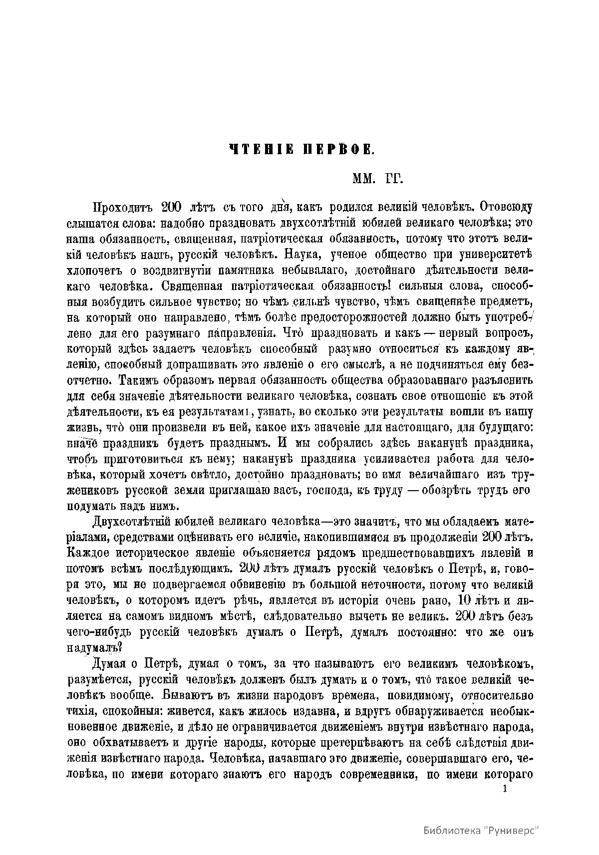 Двенадцать лекций о Петре Великом, посвященные 200-летию со дня его рождения. «Можно ли в кратком очерке обозначить деятельность небывалую в истории человечества? Нужно было обозначить деятельность человека, который прибавил в историю целый великий народ, целое великое племя, деятельность человека, который имел полное право сказать, что не жалел ничего для своего народа, который сильной рукой помог своему народу совершить переход необходимый, но страшно трудный, какого ни один народ не совершал при таких неблагоприятных обстоятельствах».