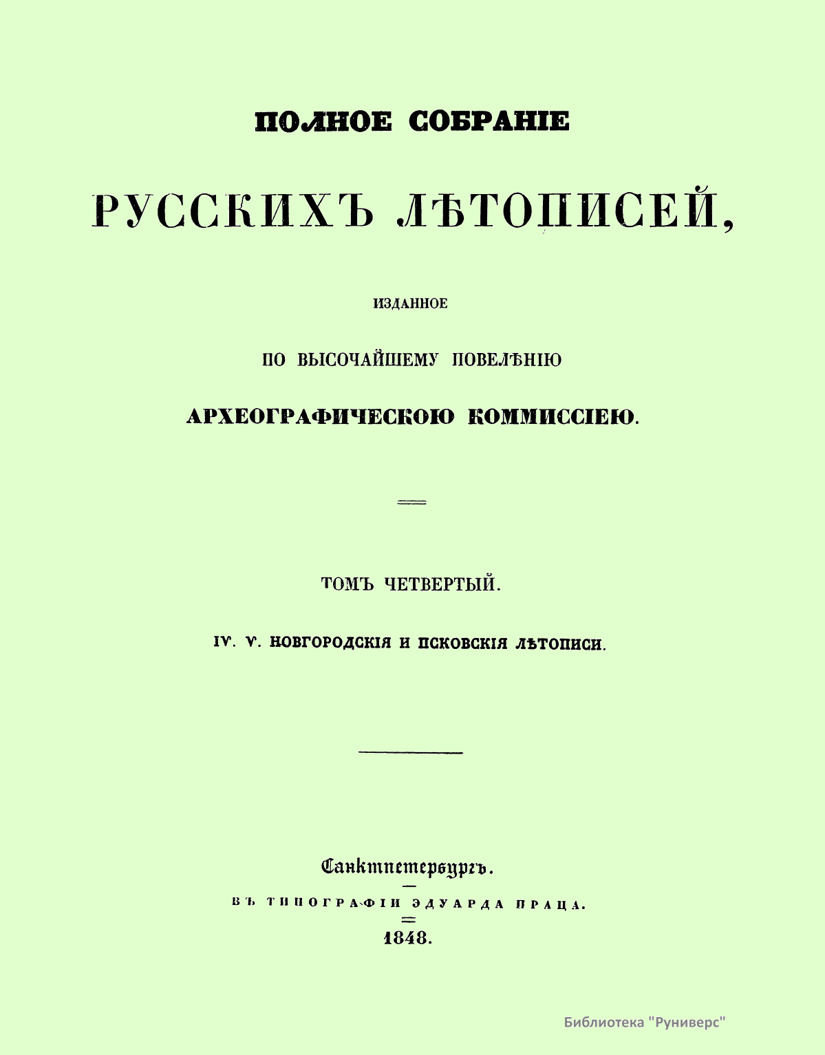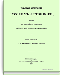 Полное собранiе русскихъ лѣтописей. Томъ четвертый. IV. V. Новгородскiя и Псковскiя лѣтописи