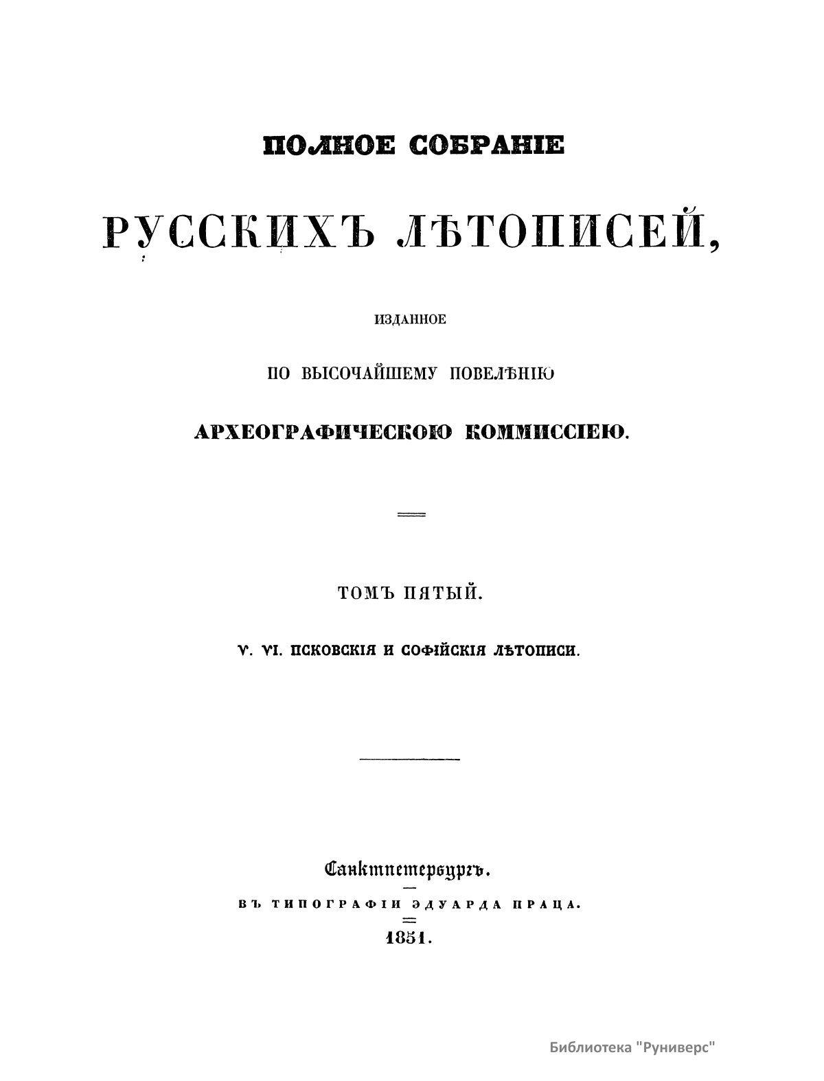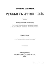Полное собранiе русскихъ лѣтописей. Томъ пятый. V. VI. Псковкiя и Софийскiя лѣтописи