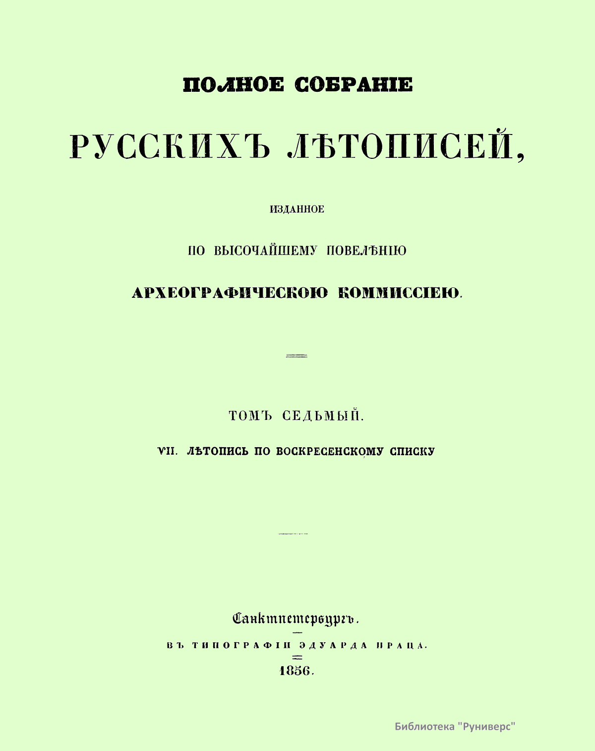Полное собрание русских летописей. Том седьмой. VII. Летопись по воскресенскому списку