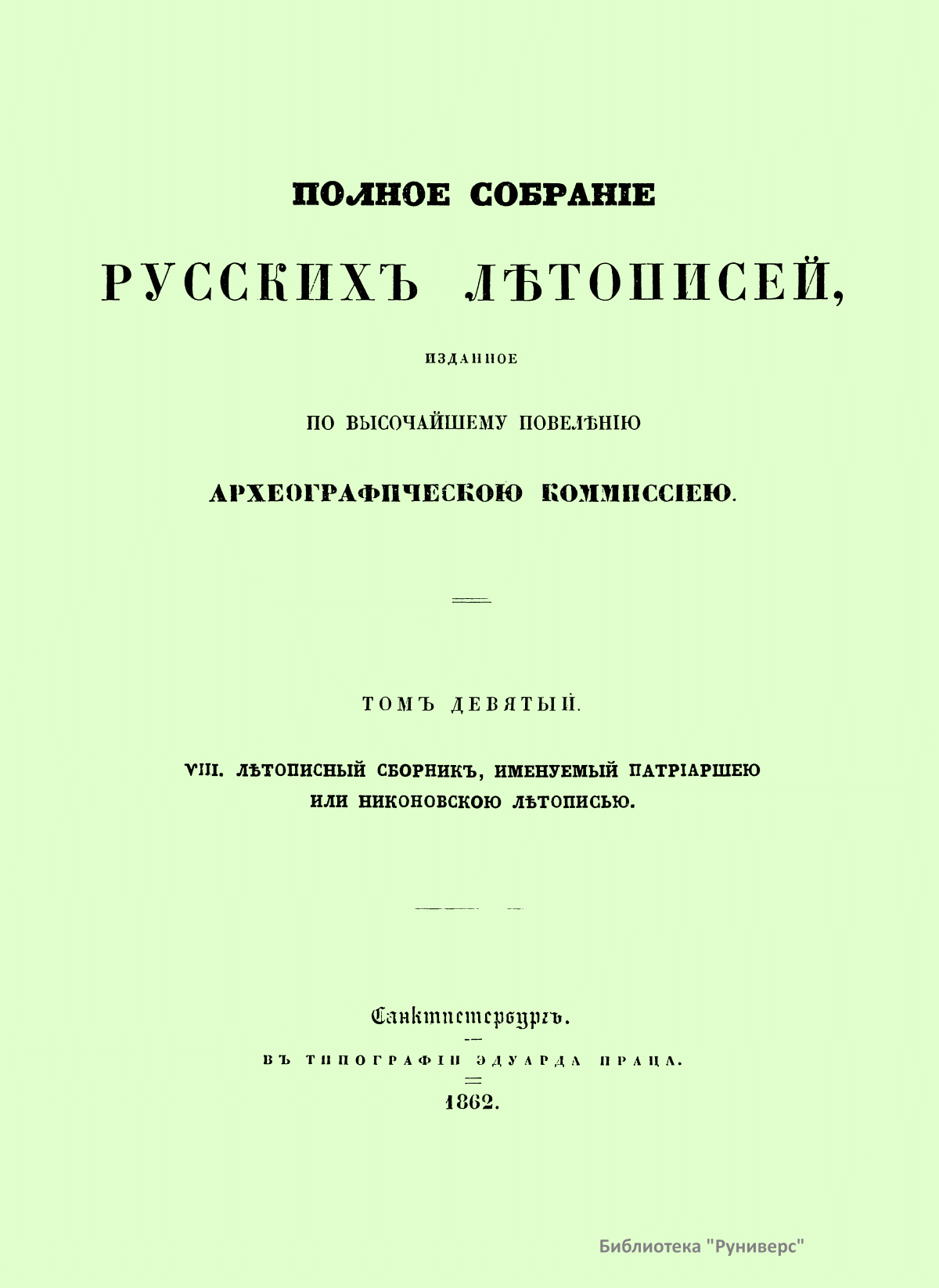 Полное собранiе русскихъ лѣтописей. Томъ девятый. VIII. Лѣтописный сборник, именуемый Патрiаршею или Никоновскою лѣтописью