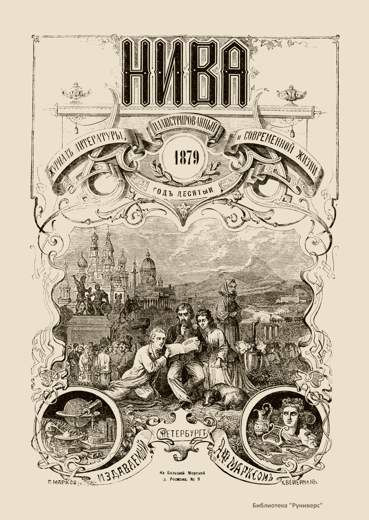 «Нива» — популярный еженедельный русский журнал с приложениями, издававшийся со второй половины XIX до начала XX века, носил подзаголовок «Журнал литературы, политики и современной жизни». Журнал был любимым детищем А. Ф. Маркса, возглавлявшего свое издательство вплоть до своей смерти в 1904 г. Позиционировалась «Нива» как иллюстрированный журнал для семейного чтения и был ориентирован, главным образом, на обывателя. В журнале публиковались литературные произведения, исторические, научно-популярные очерки, репродукции и гравюры картин современных художников. Материалы политического и общественного содержания также сопровождались многочисленными иллюстрациями. Среди известных литераторов, печатавшихся в журнале, были А. К. Толстой, Ф. И. Тютчев, Л. Н. Толстой, А. А. Фет, А. П. Чехов, Максим Горький, Корней Чуковский, Анна Ахматова, Иван Бунин и многие другие. Благодаря «Ниве» сочинения многих современных авторов добрались до самых отдаленных областей России.