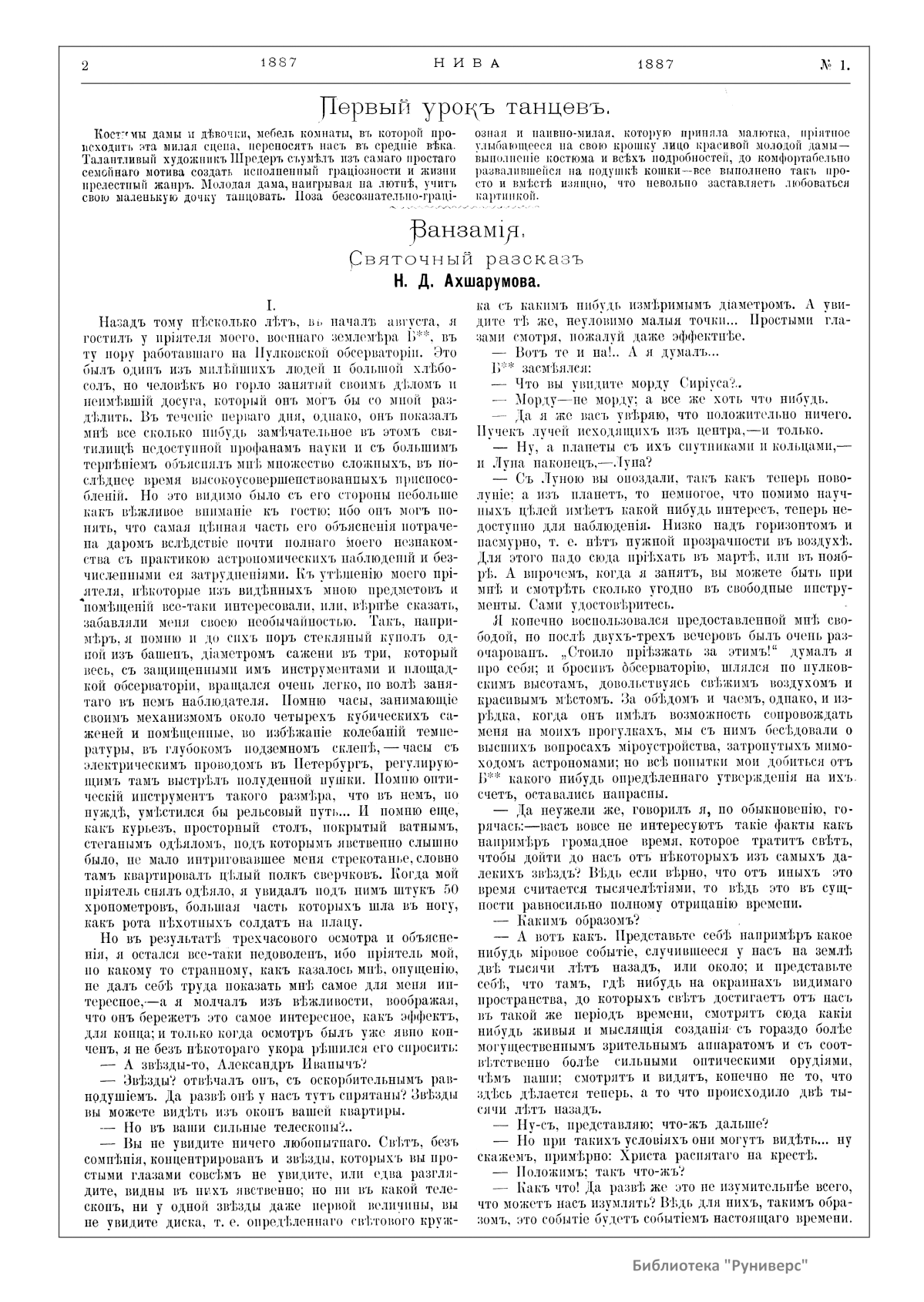 «Нива» — популярный еженедельный русский журнал с приложениями, издававшийся со второй половины XIX до начала XX века, носил подзаголовок «Журнал литературы, политики и современной жизни». Журнал был любимым детищем А. Ф. Маркса, возглавлявшего свое издательство вплоть до своей смерти в 1904 г. Позиционировалась «Нива» как иллюстрированный журнал для семейного чтения и был ориентирован, главным образом, на обывателя. В журнале публиковались литературные произведения, исторические, научно-популярные очерки, репродукции и гравюры картин современных художников. Материалы политического и общественного содержания также сопровождались многочисленными иллюстрациями. Среди известных литераторов, печатавшихся в журнале, были А. К. Толстой, Ф. И. Тютчев, Л. Н. Толстой, А. А. Фет, А. П. Чехов, Максим Горький, Корней Чуковский, Анна Ахматова, Иван Бунин и многие другие. Благодаря «Ниве» сочинения многих современных авторов добрались до самых отдаленных областей России.