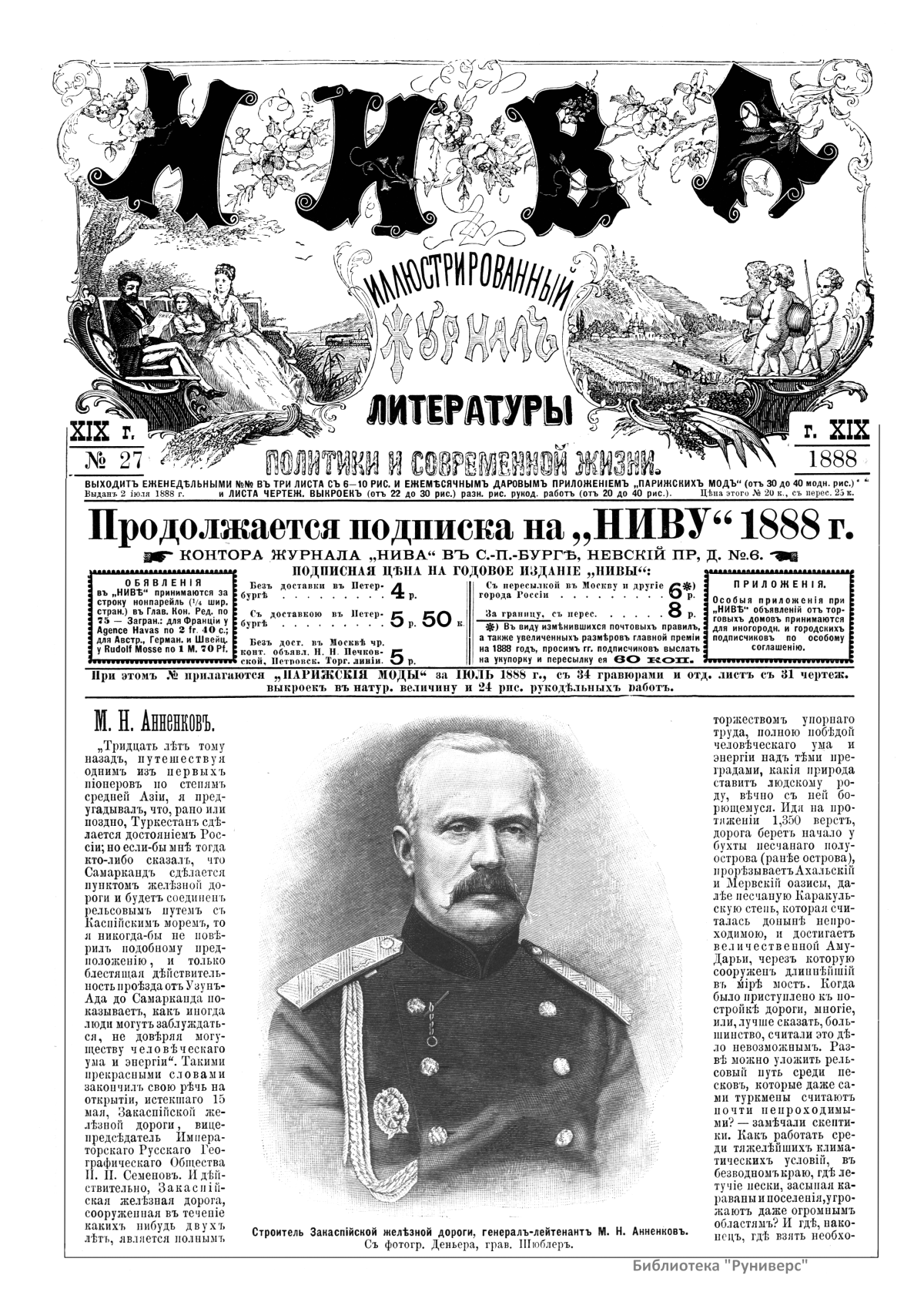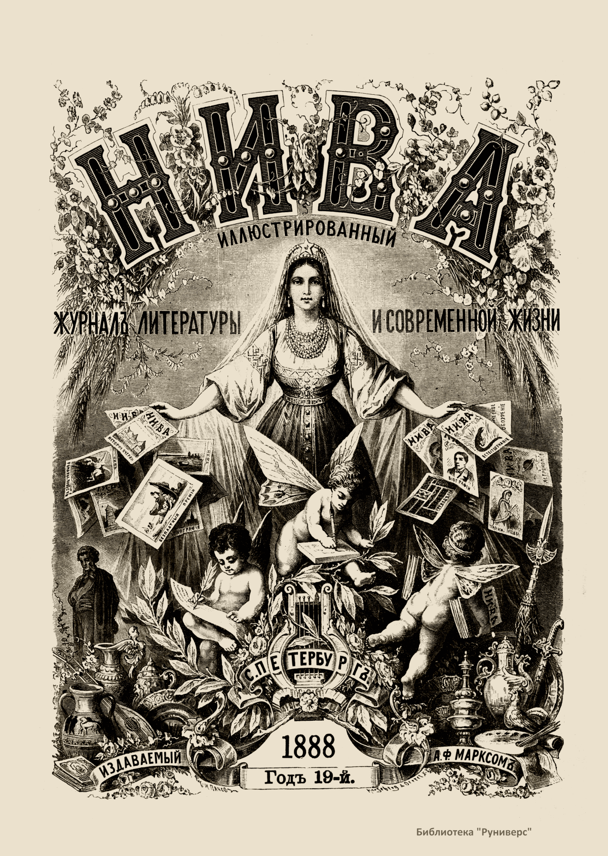 «Нива» — популярный еженедельный русский журнал с приложениями, издававшийся со второй половины XIX до начала XX века, носил подзаголовок «Журнал литературы, политики и современной жизни». Журнал был любимым детищем А. Ф. Маркса, возглавлявшего свое издательство вплоть до своей смерти в 1904 г. Позиционировалась «Нива» как иллюстрированный журнал для семейного чтения и был ориентирован, главным образом, на обывателя. В журнале публиковались литературные произведения, исторические, научно-популярные очерки, репродукции и гравюры картин современных художников. Материалы политического и общественного содержания также сопровождались многочисленными иллюстрациями. Среди известных литераторов, печатавшихся в журнале, были А. К. Толстой, Ф. И. Тютчев, Л. Н. Толстой, А. А. Фет, А. П. Чехов, Максим Горький, Корней Чуковский, Анна Ахматова, Иван Бунин и многие другие. Благодаря «Ниве» сочинения многих современных авторов добрались до самых отдаленных областей России.