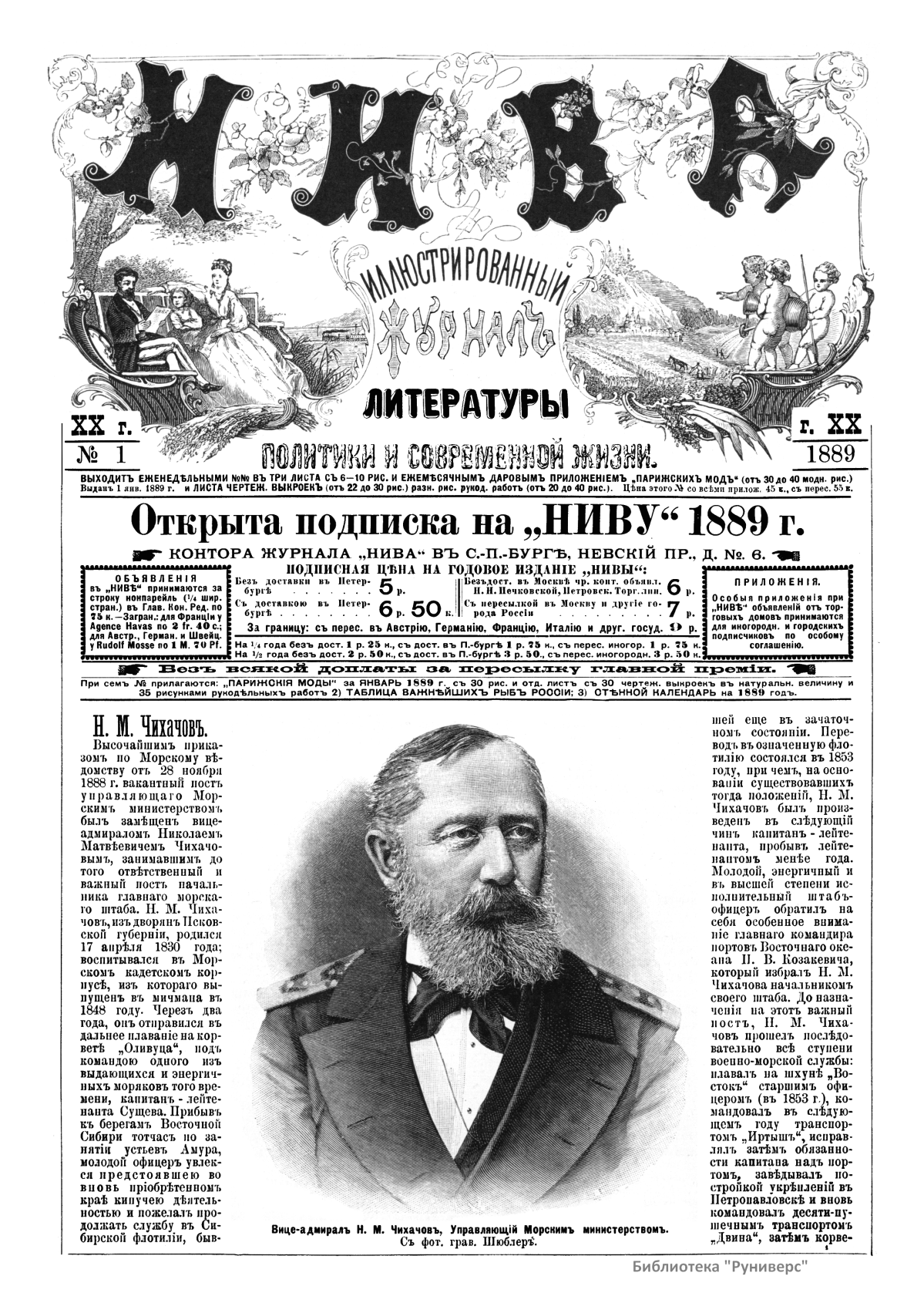 «Нива» — популярный еженедельный русский журнал с приложениями, издававшийся со второй половины XIX до начала XX века, носил подзаголовок «Журнал литературы, политики и современной жизни». Журнал был любимым детищем А. Ф. Маркса, возглавлявшего свое издательство вплоть до своей смерти в 1904 г. Позиционировалась «Нива» как иллюстрированный журнал для семейного чтения и был ориентирован, главным образом, на обывателя. В журнале публиковались литературные произведения, исторические, научно-популярные очерки, репродукции и гравюры картин современных художников. Материалы политического и общественного содержания также сопровождались многочисленными иллюстрациями. Среди известных литераторов, печатавшихся в журнале, были А. К. Толстой, Ф. И. Тютчев, Л. Н. Толстой, А. А. Фет, А. П. Чехов, Максим Горький, Корней Чуковский, Анна Ахматова, Иван Бунин и многие другие. Благодаря «Ниве» сочинения многих современных авторов добрались до самых отдаленных областей России.