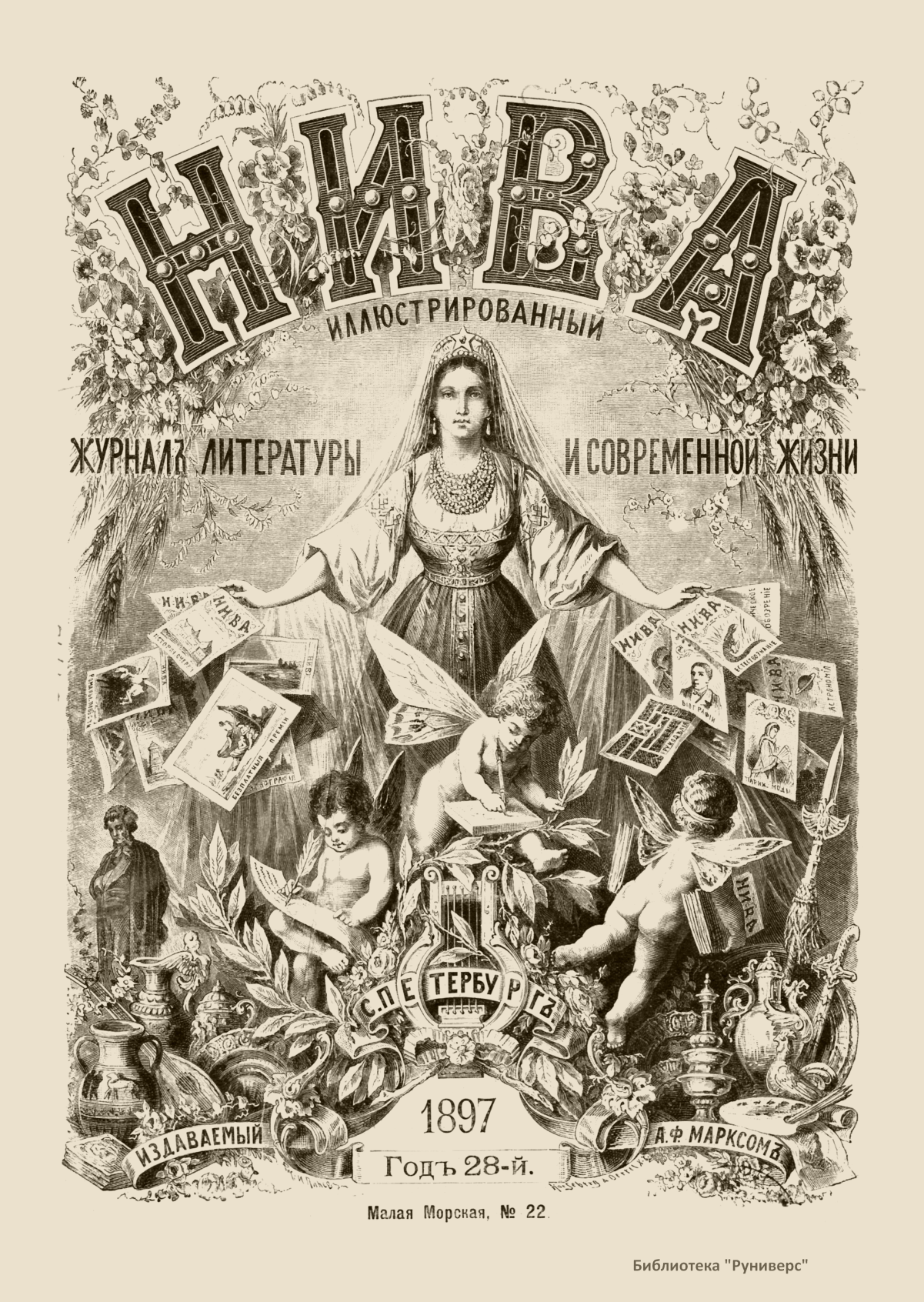 «Нива» — популярный еженедельный русский журнал с приложениями, издававшийся со второй половины XIX до начала XX века, носил подзаголовок «Журнал литературы, политики и современной жизни». Журнал был любимым детищем А. Ф. Маркса, возглавлявшего свое издательство вплоть до своей смерти в 1904 г. Позиционировалась «Нива» как иллюстрированный журнал для семейного чтения и был ориентирован, главным образом, на обывателя. В журнале публиковались литературные произведения, исторические, научно-популярные очерки, репродукции и гравюры картин современных художников. Материалы политического и общественного содержания также сопровождались многочисленными иллюстрациями. Среди известных литераторов, печатавшихся в журнале, были А. К. Толстой, Ф. И. Тютчев, Л. Н. Толстой, А. А. Фет, А. П. Чехов, Максим Горький, Корней Чуковский, Анна Ахматова, Иван Бунин и многие другие. Благодаря «Ниве» сочинения многих современных авторов добрались до самых отдаленных областей России.