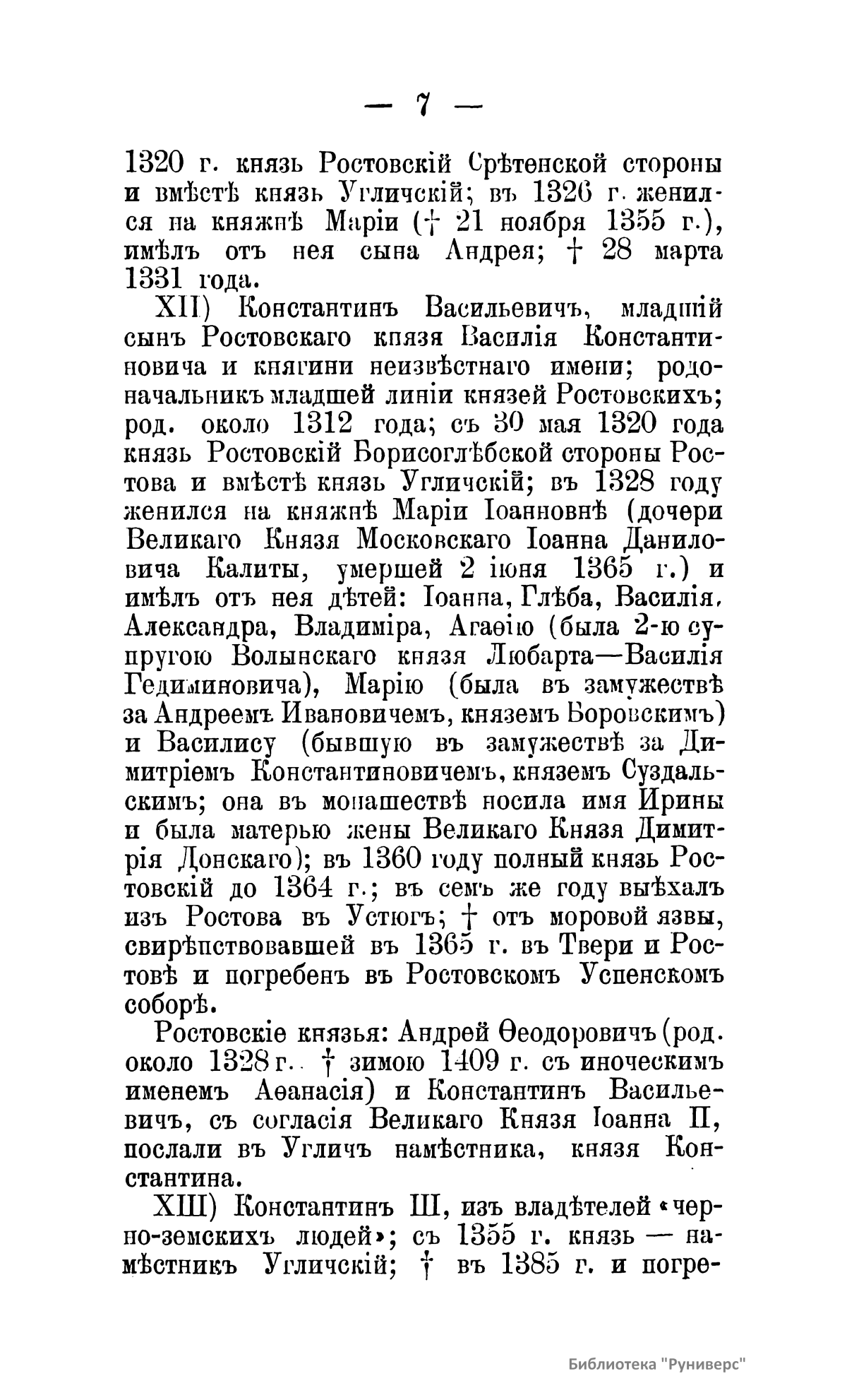 Брошюра содержит сведения об углических владетельных князьях из рода Великих князей владимирских; об углических владетельных князьях из рода Великих князей московских.