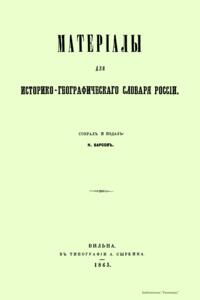 Матерiалы для историко-географическаго словаря Россiи