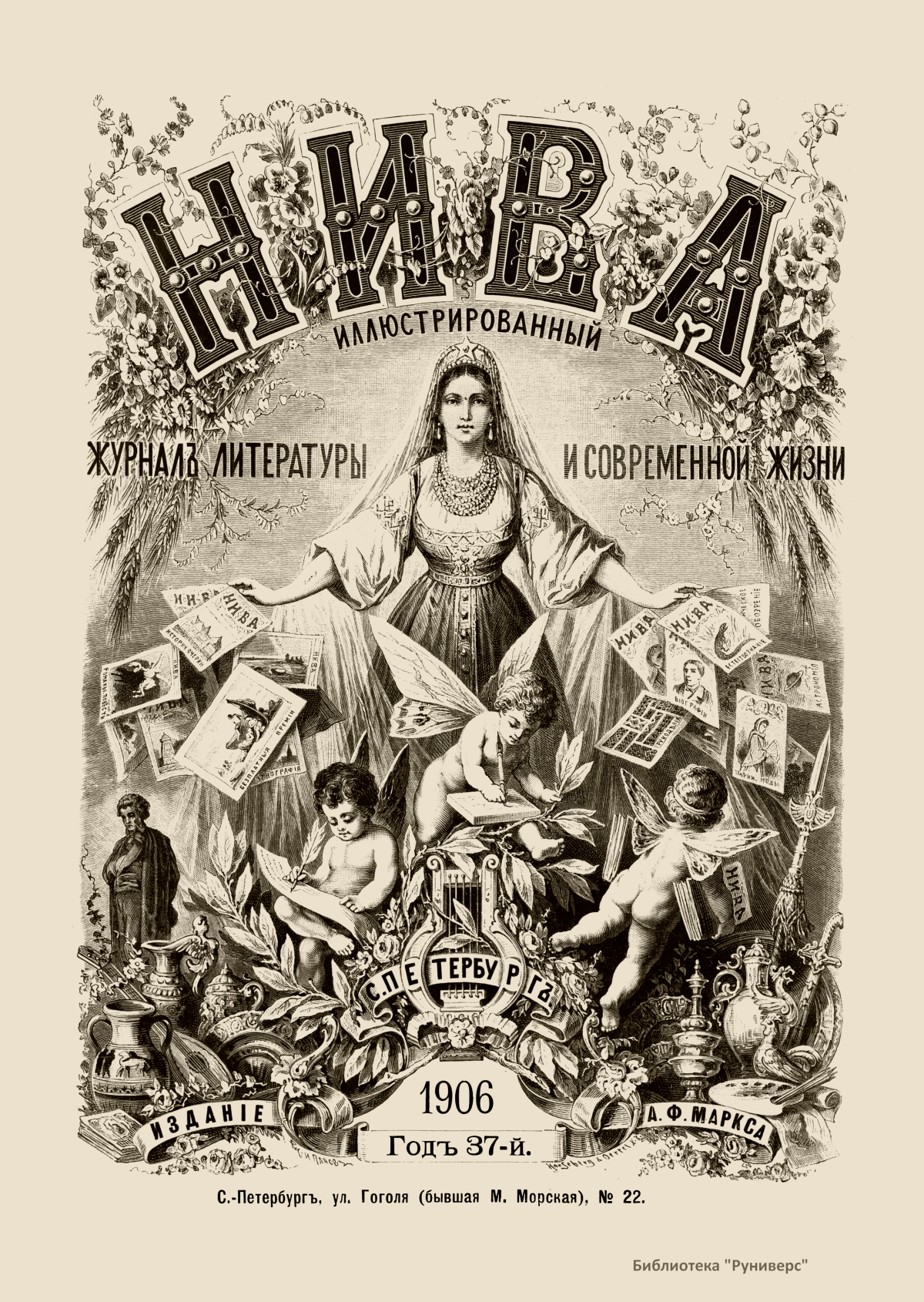 «Нива» — популярный еженедельный русский журнал с приложениями, издававшийся со второй половины XIX до начала XX века, носил подзаголовок «Журнал литературы, политики и современной жизни». Журнал был любимым детищем А. Ф. Маркса, возглавлявшего свое издательство вплоть до своей смерти в 1904 г. Позиционировалась «Нива» как иллюстрированный журнал для семейного чтения и был ориентирован, главным образом, на обывателя. В журнале публиковались литературные произведения, исторические, научно-популярные очерки, репродукции и гравюры картин современных художников. Материалы политического и общественного содержания также сопровождались многочисленными иллюстрациями. Среди известных литераторов, печатавшихся в журнале, были А. К. Толстой, Ф. И. Тютчев, Л. Н. Толстой, А. А. Фет, А. П. Чехов, Максим Горький, Корней Чуковский, Анна Ахматова, Иван Бунин и многие другие. Благодаря «Ниве» сочинения многих современных авторов добрались до самых отдаленных областей России.