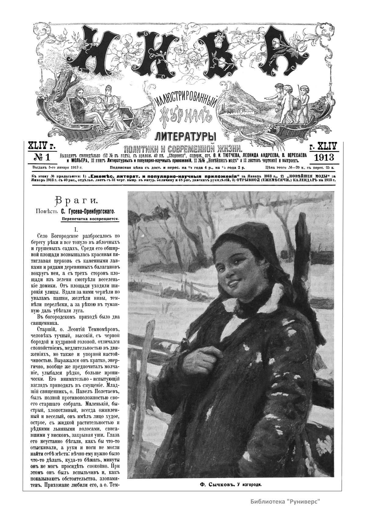 «Нива» — популярный еженедельный русский журнал с приложениями, издававшийся со второй половины XIX до начала XX века, носил подзаголовок «Журнал литературы, политики и современной жизни». Журнал был любимым детищем А. Ф. Маркса, возглавлявшего свое издательство вплоть до своей смерти в 1904 г. Позиционировалась «Нива» как иллюстрированный журнал для семейного чтения и был ориентирован, главным образом, на обывателя. В журнале публиковались литературные произведения, исторические, научно-популярные очерки, репродукции и гравюры картин современных художников. Материалы политического и общественного содержания также сопровождались многочисленными иллюстрациями. Среди известных литераторов, печатавшихся в журнале, были А. К. Толстой, Ф. И. Тютчев, Л. Н. Толстой, А. А. Фет, А. П. Чехов, Максим Горький, Корней Чуковский, Анна Ахматова, Иван Бунин и многие другие. Благодаря «Ниве» сочинения многих современных авторов добрались до самых отдаленных областей России.