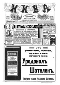 «Нива» — популярный еженедельный русский журнал с приложениями, издававшийся со второй половины XIX до начала XX века, носил подзаголовок «Журнал литературы, политики и современной жизни». Журнал был любимым детищем А. Ф. Маркса, возглавлявшего свое издательство вплоть до своей смерти в 1904 г. Позиционировалась «Нива» как иллюстрированный журнал для семейного чтения и был ориентирован, главным образом, на обывателя. В журнале публиковались литературные произведения, исторические, научно-популярные очерки, репродукции и гравюры картин современных художников. Материалы политического и общественного содержания также сопровождались многочисленными иллюстрациями. Среди известных литераторов, печатавшихся в журнале, были А. К. Толстой, Ф. И. Тютчев, Л. Н. Толстой, А. А. Фет, А. П. Чехов, Максим Горький, Корней Чуковский, Анна Ахматова, Иван Бунин и многие другие. Благодаря «Ниве» сочинения многих современных авторов добрались до самых отдаленных областей России.