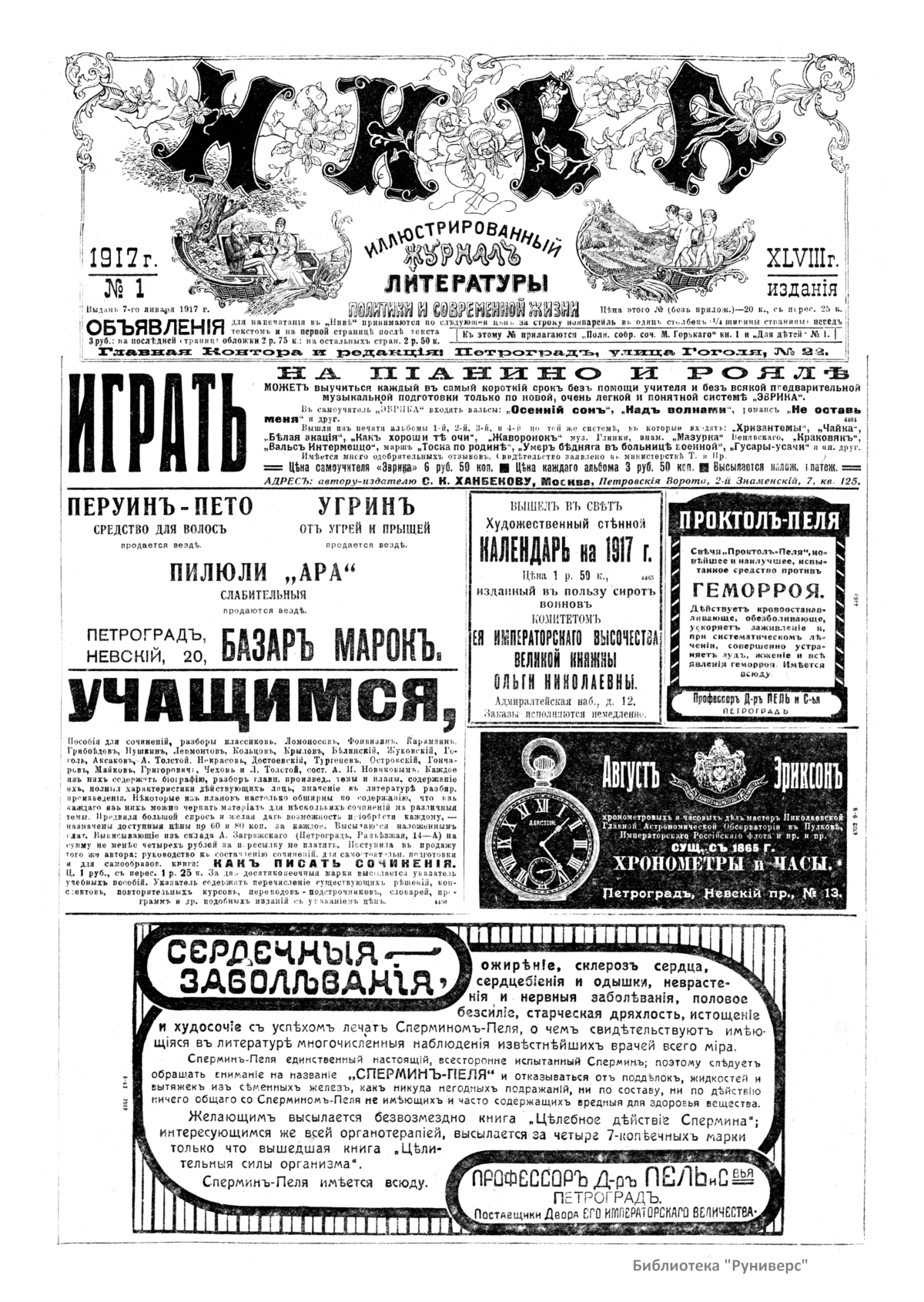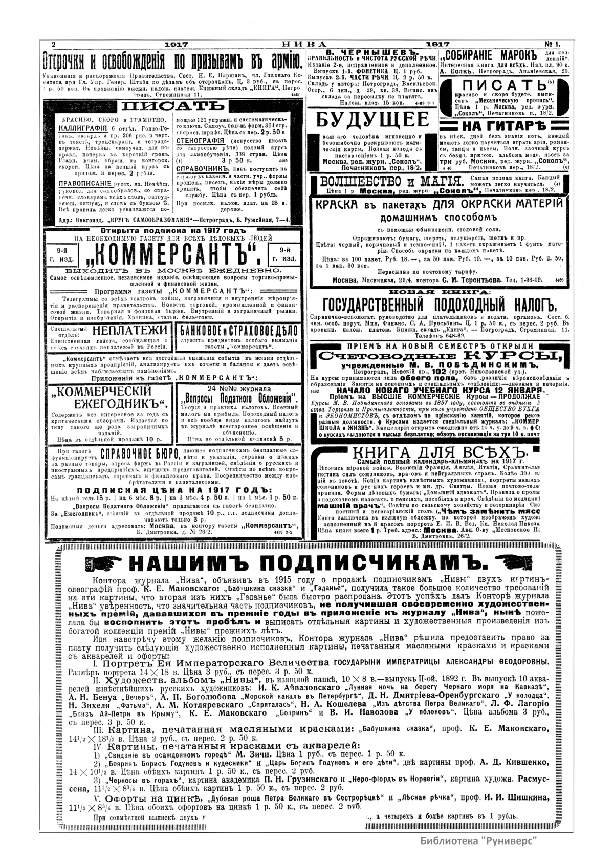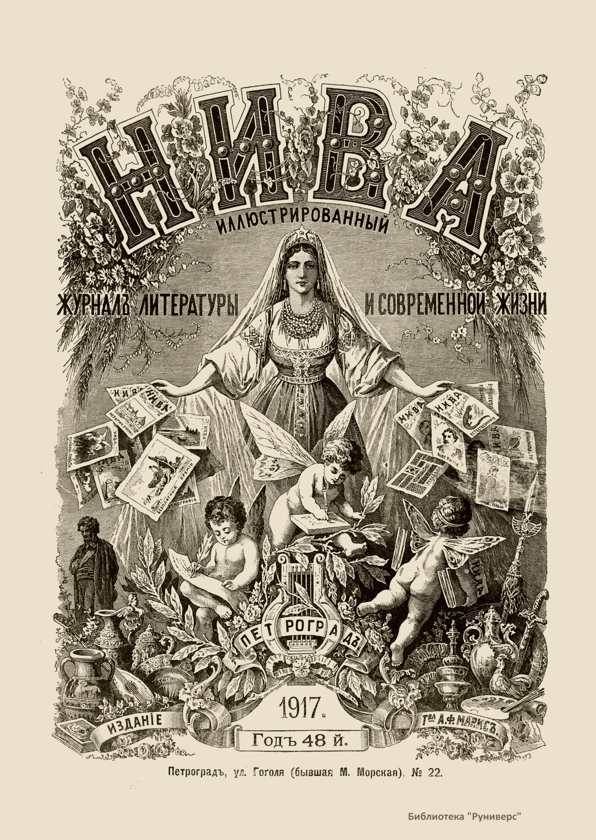 «Нива» — популярный еженедельный русский журнал с приложениями, издававшийся со второй половины XIX до начала XX века, носил подзаголовок «Журнал литературы, политики и современной жизни». Журнал был любимым детищем А. Ф. Маркса, возглавлявшего свое издательство вплоть до своей смерти в 1904 г. Позиционировалась «Нива» как иллюстрированный журнал для семейного чтения и был ориентирован, главным образом, на обывателя. В журнале публиковались литературные произведения, исторические, научно-популярные очерки, репродукции и гравюры картин современных художников. Материалы политического и общественного содержания также сопровождались многочисленными иллюстрациями. Среди известных литераторов, печатавшихся в журнале, были А. К. Толстой, Ф. И. Тютчев, Л. Н. Толстой, А. А. Фет, А. П. Чехов, Максим Горький, Корней Чуковский, Анна Ахматова, Иван Бунин и многие другие. Благодаря «Ниве» сочинения многих современных авторов добрались до самых отдаленных областей России.