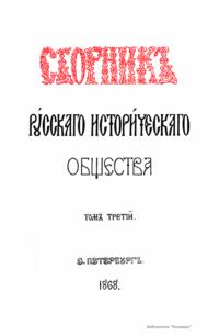 Сборникъ Русскаго историческаго общества. Томъ третiй