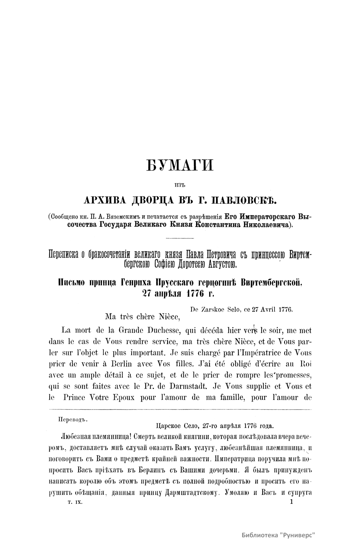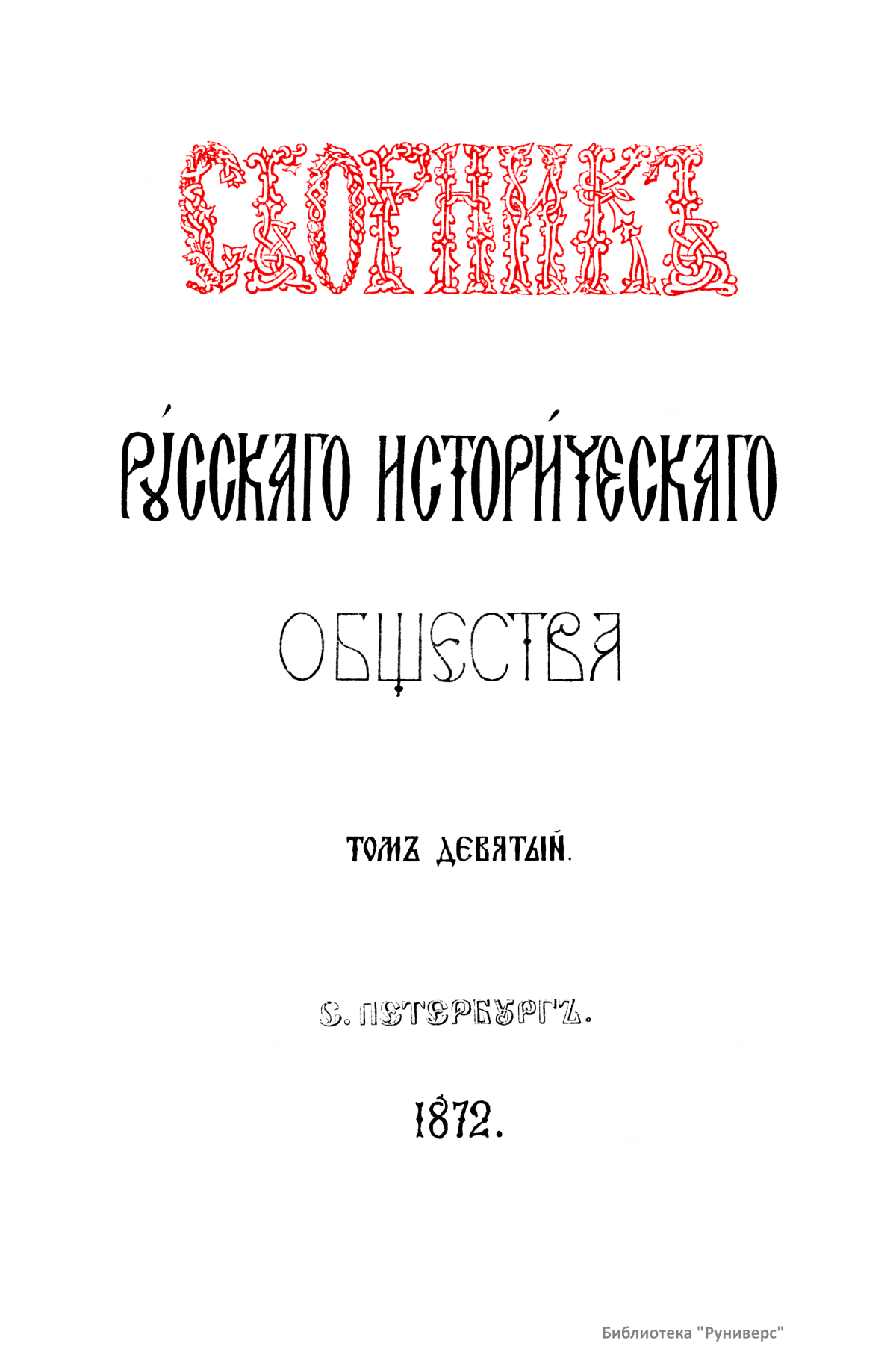 Сборникъ Русскаго историческаго общества. Томъ девятый