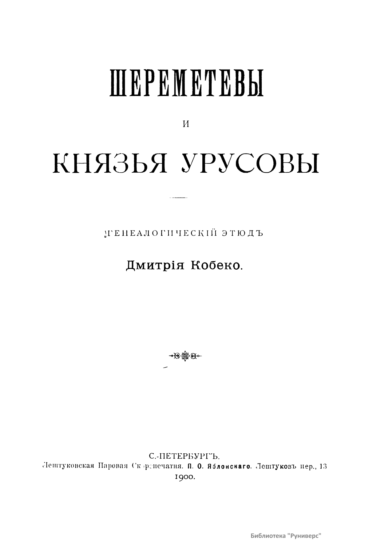 В настоящей брошюре автор показывает родственные связи Шереметевых и князей Урусовых.