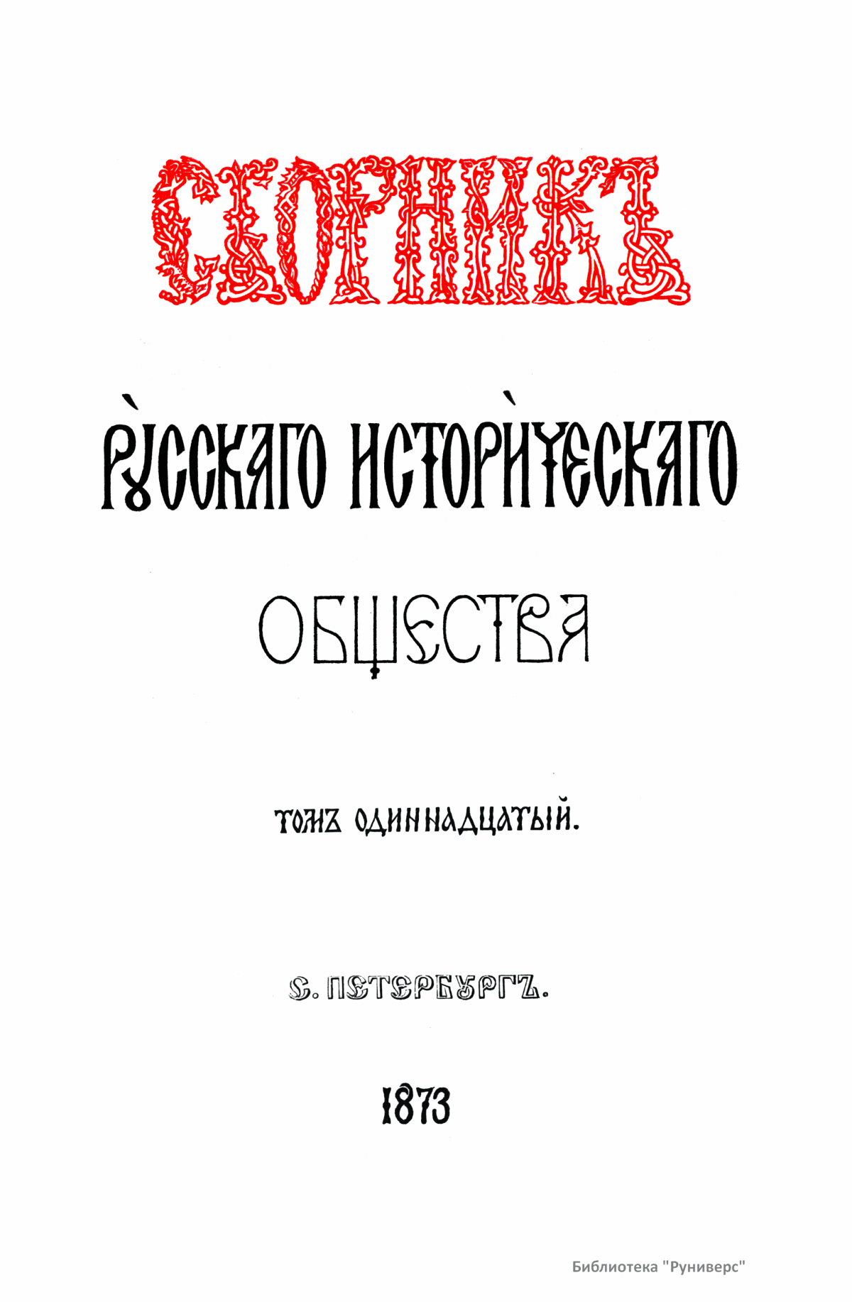 Сборникъ Русскаго историческаго общества. Томъ одиннадцатый