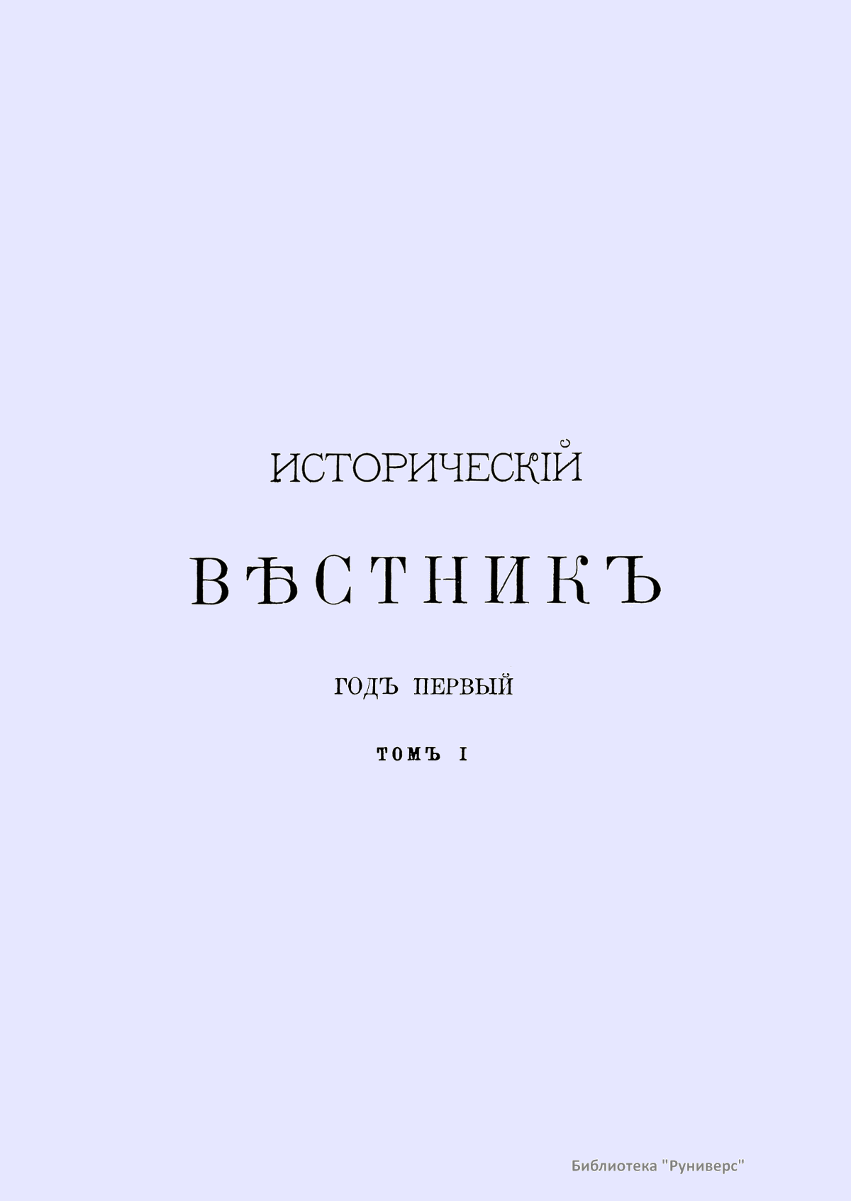 Историческiй вѣстникъ. Историко-литературный журналъ. Томъ I