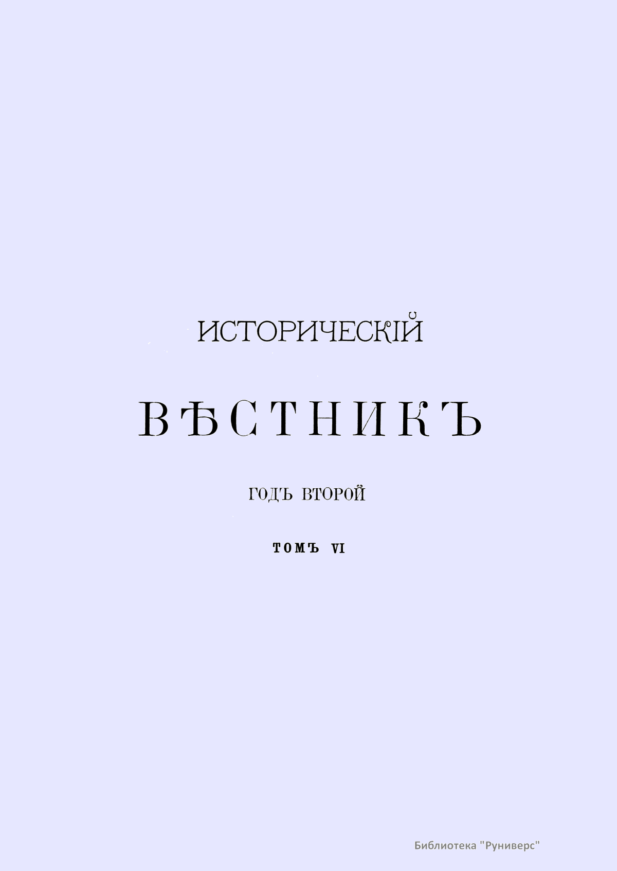 Историческiй вѣстникъ. Историко-литературный журналъ. Томъ VI