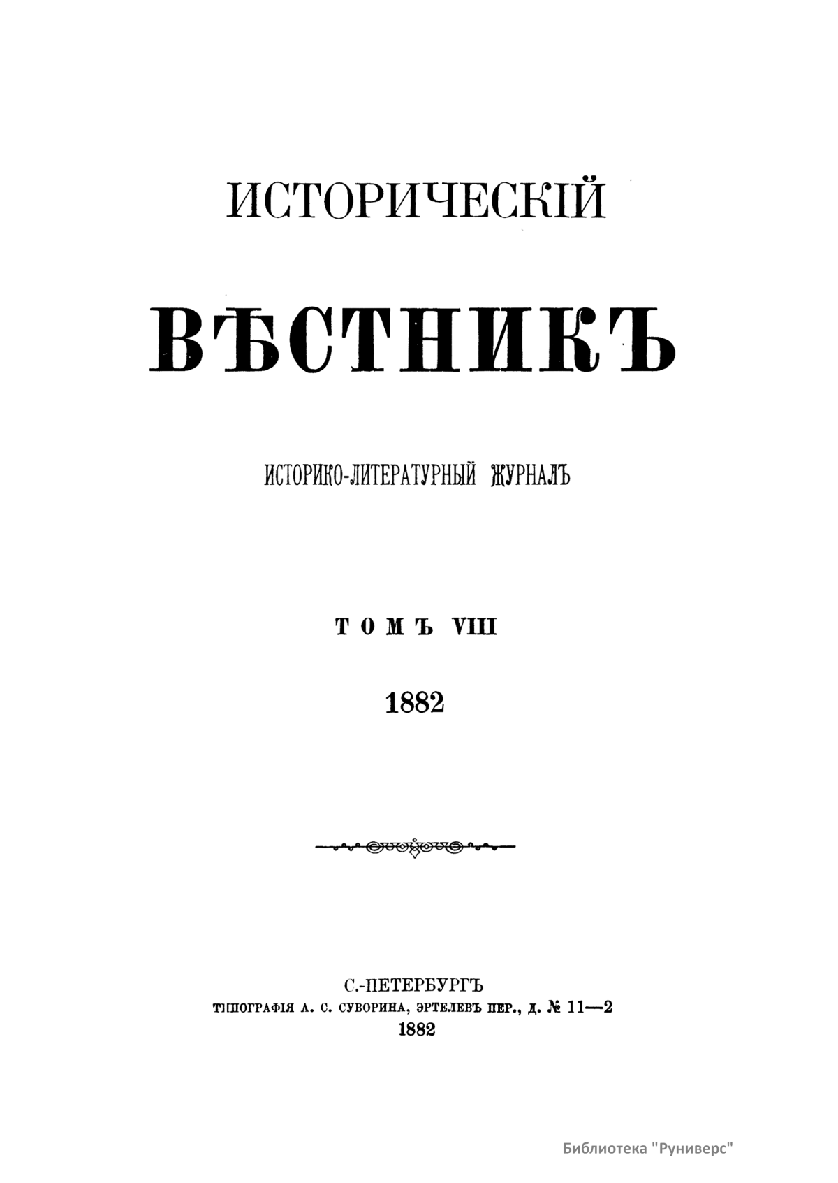 Исторический вестник. Историко-литературный журнал. Том VIII