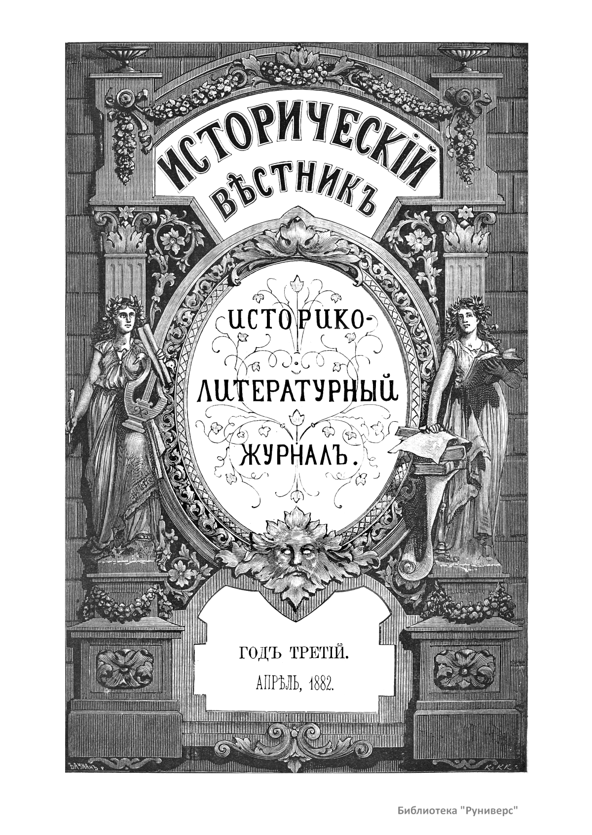 «Исторический вестник» - русский ежемесячный историко-литературный журнал. Издавался в Санкт-Петербурге с 1880-го по 1917 г. Журнал был основан А.С. Сувориным и С.Н. Шубинским с целью «знакомить читателей в живой, общедоступной форме с современным состоянием исторической науки и литературы в России и Европе». Вышло 150 тт. Каждый том состоял из трёх ежемесячных выпусков, имел свою нумерацию страниц, оглавление, список иллюстраций. Журнал приобрёл устойчивую популярность среди читателей, заняв прочное место в «триумвирате» русских исторических журналов наряду с «Русским архивом» и «Русской стариной». опережая их по количеству подписчиков. Отличием «Исторического вестника» было то, что он не помещал на своих страницах необработанных, сырых материалов. С другой стороны, журнал приближался по своему типу к журналам общелитературного образца, сочетая в себе коммерческий успех и доступное изложение материала.