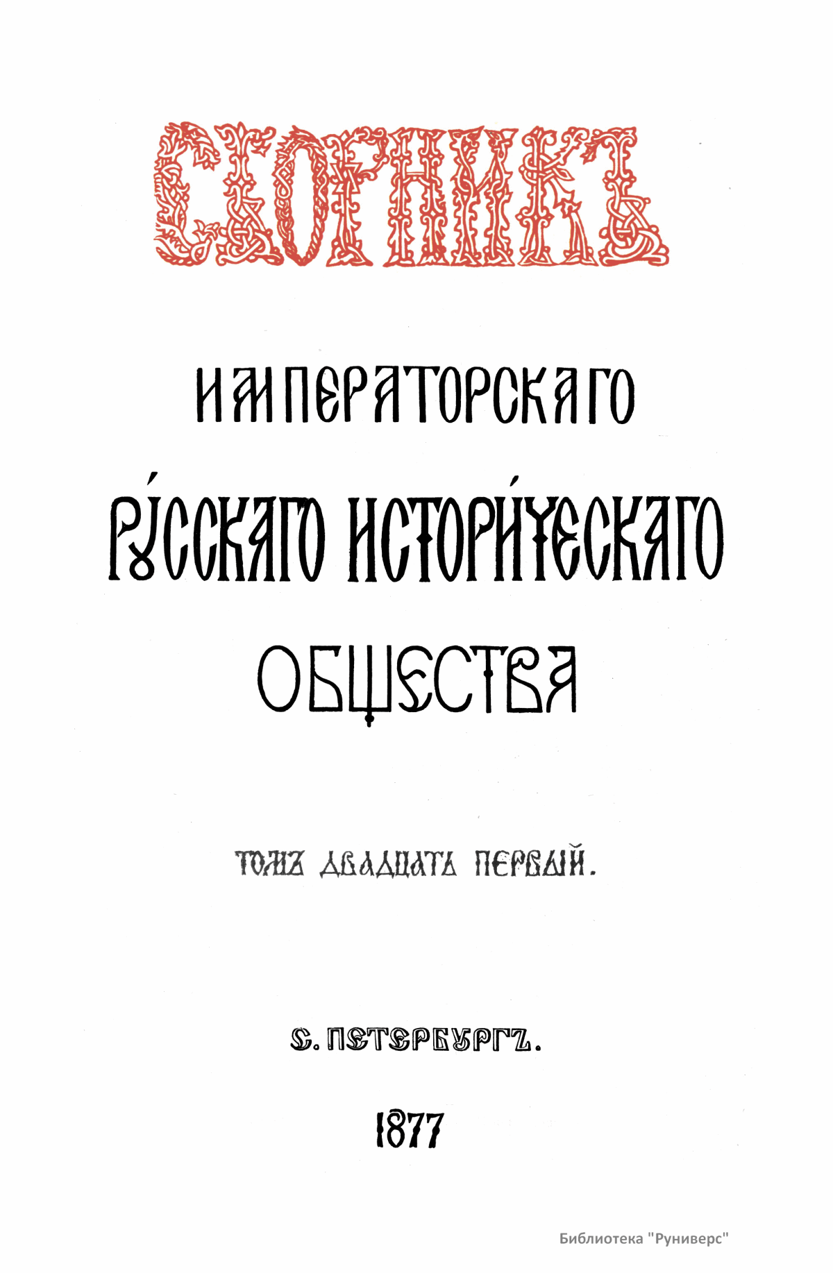 Сборник Русского исторического общества. Том двадцать первый