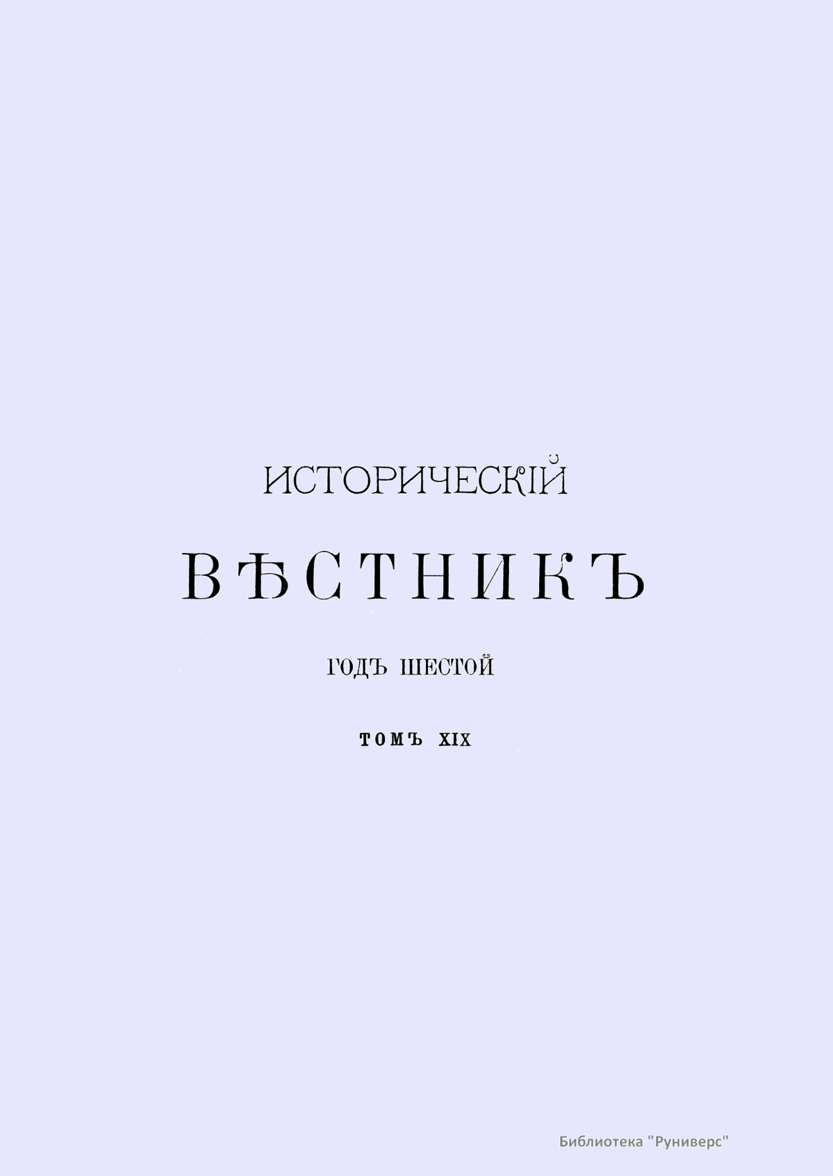 Исторический вестник. Историко-литературный журнал. Том XIX